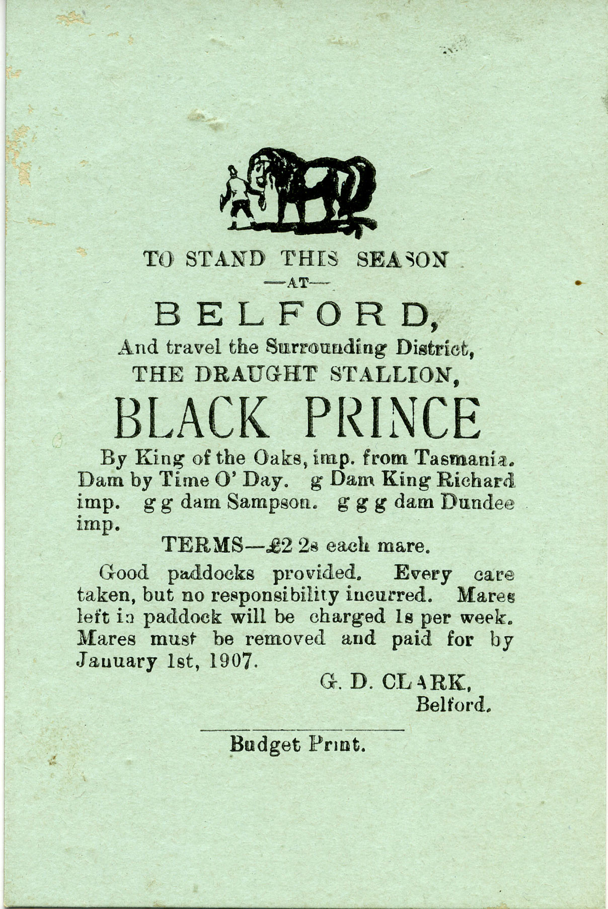 Stud Horse, Black Prince - advertisement, [A5059]. Living Histories, accessed 04/04/2026, https://livinghistories.newcastle.edu.au/nodes/view/3575