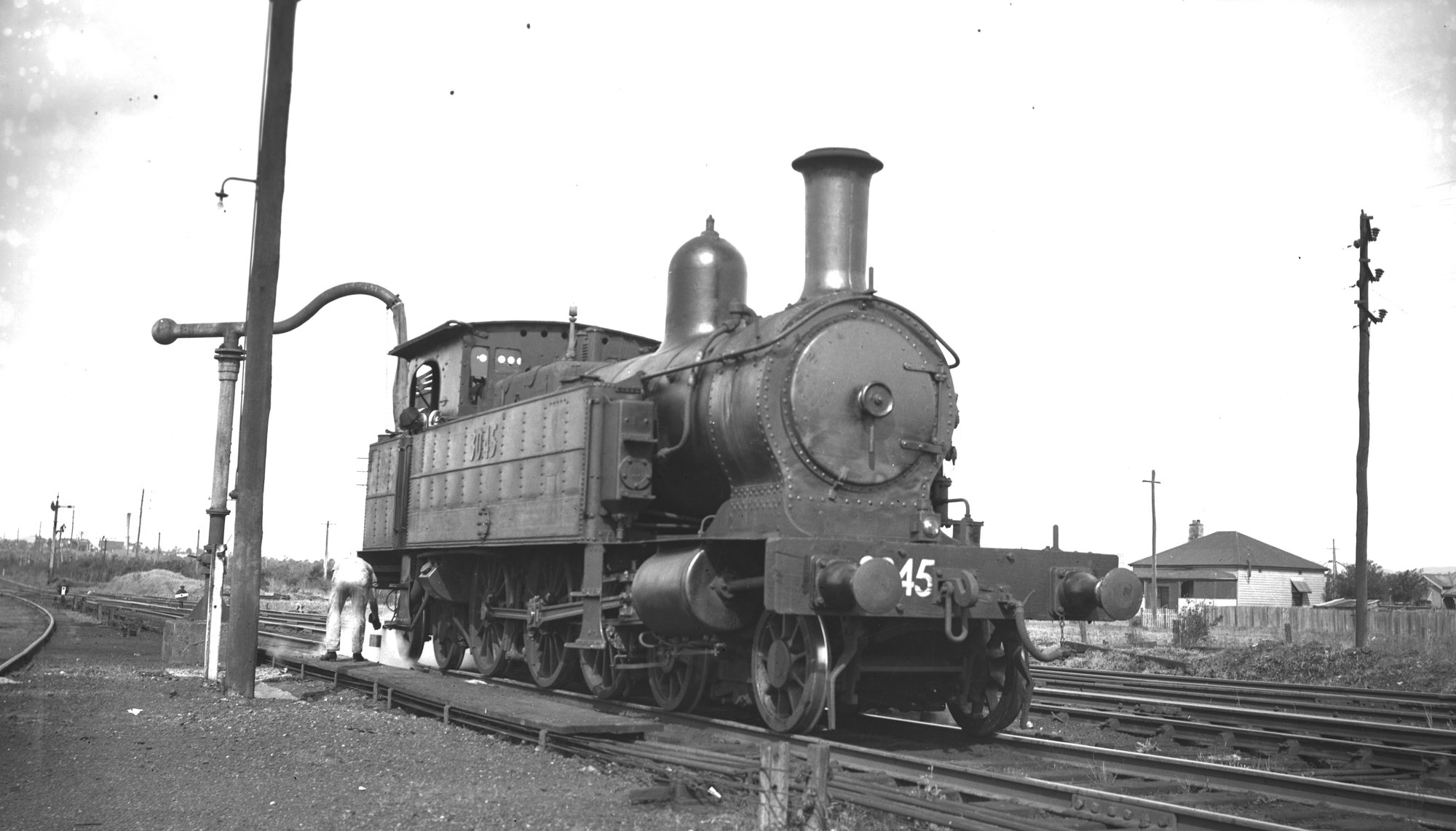 NSWGR C30 Class No. 3045 4-6-4 Suburban Tank taking on water at Cessnock, [1940s] ([1940s]), [ARHSBox025_0816]. Living Histories, accessed 14/03/2026, https://livinghistories.newcastle.edu.au/nodes/view/3629