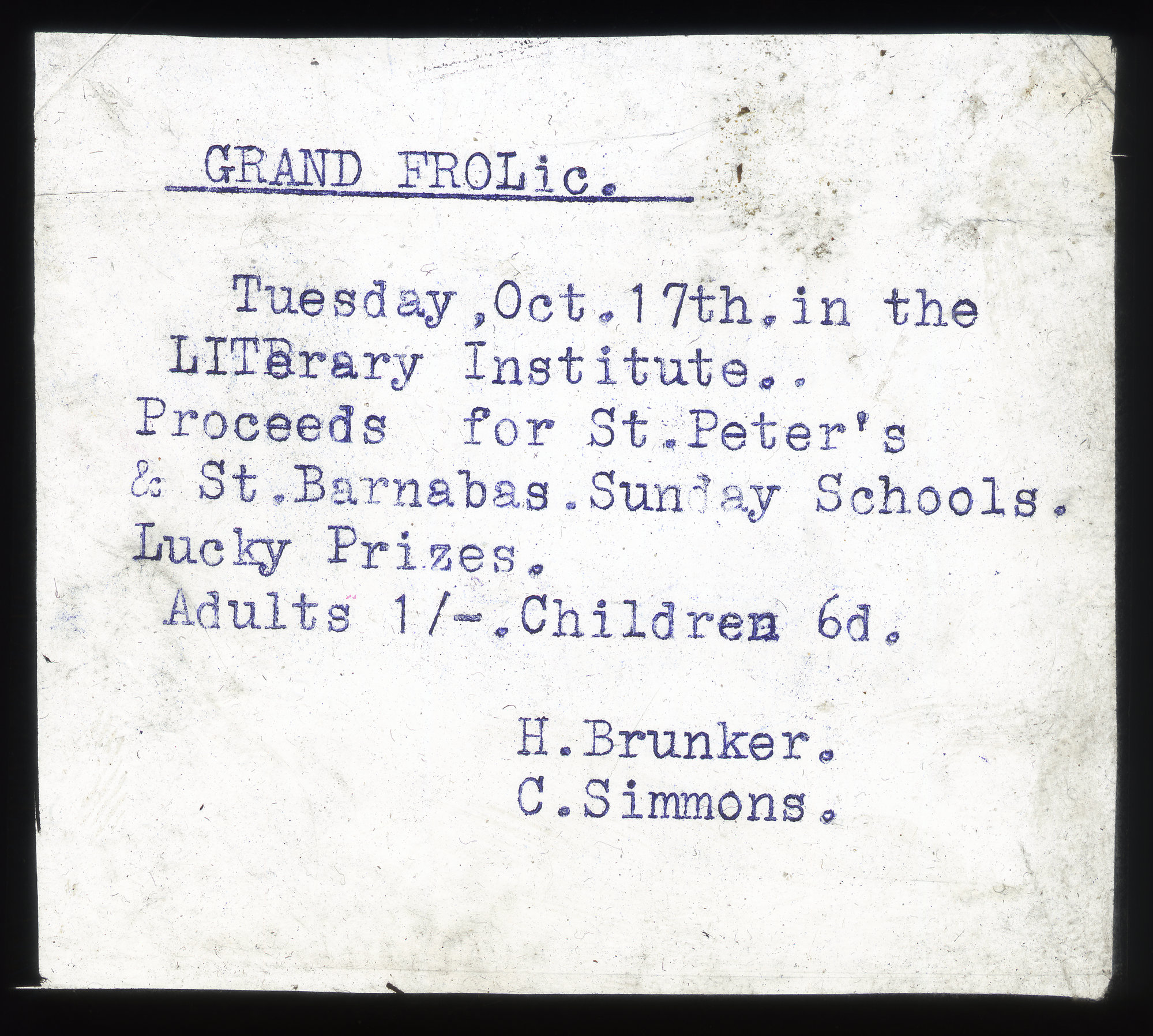 St. Peter's Church announcement, to Grand Frolic, in October, Newcastle, NSW, [A5051-061]. Living Histories, accessed 16/03/2026, https://livinghistories.newcastle.edu.au/nodes/view/36519