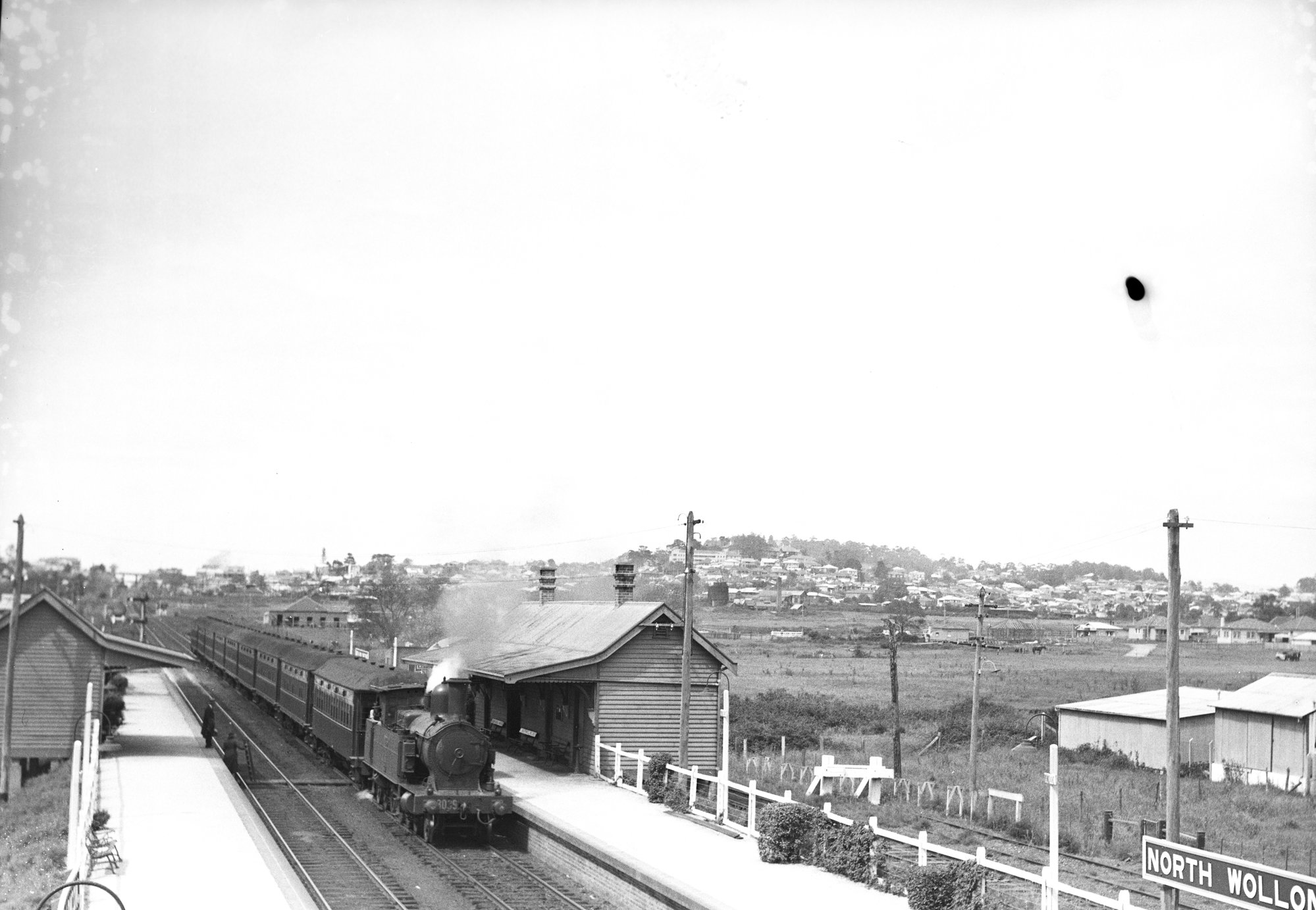 NSWGR C-30 Class No. 3039 4-6-4 Type Suburban Tank Locomotive on up passenger arriving at North Wollongong Station, [1930s] ([1930s]), [ARHSBox025_0793]. Living Histories, accessed 19/03/2026, https://livinghistories.newcastle.edu.au/nodes/view/3688