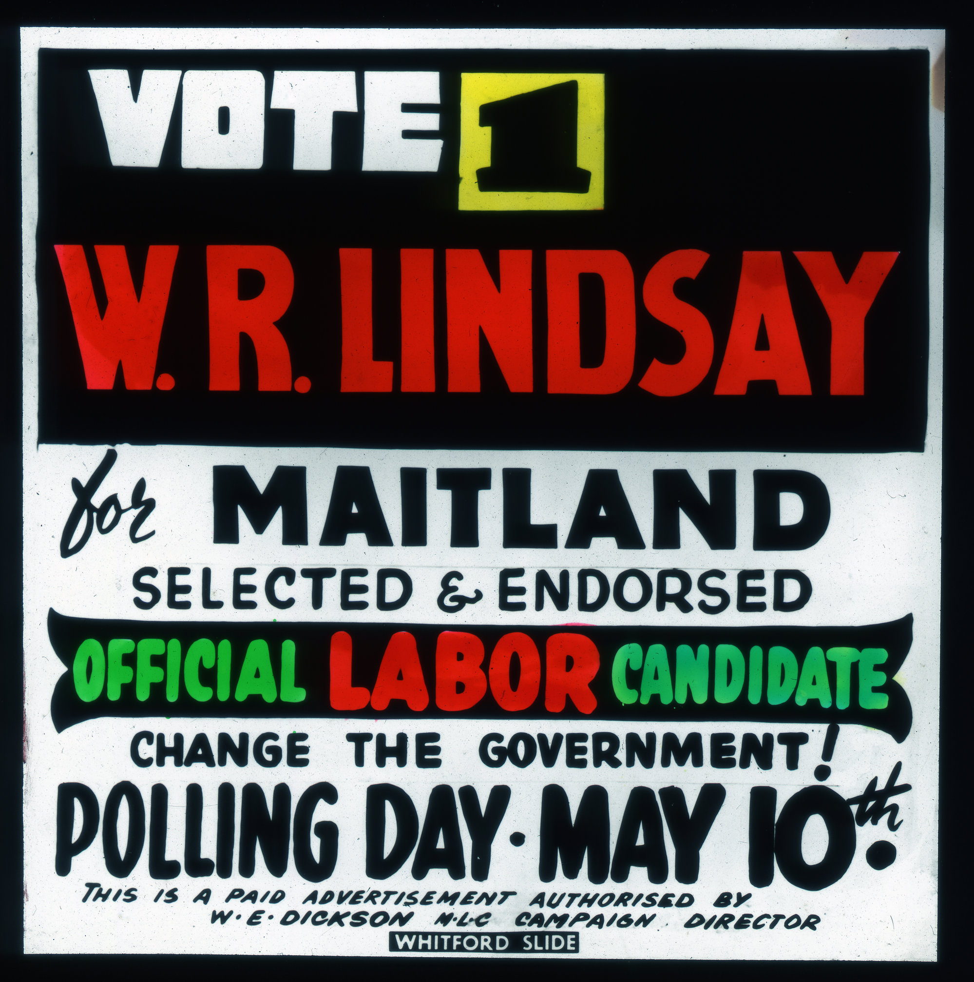 Poster for W.R. Lindsay, a candidate in the election held in Maitland, NSW, [A5049-146]. Living Histories, accessed 08/03/2026, https://livinghistories.newcastle.edu.au/nodes/view/36939