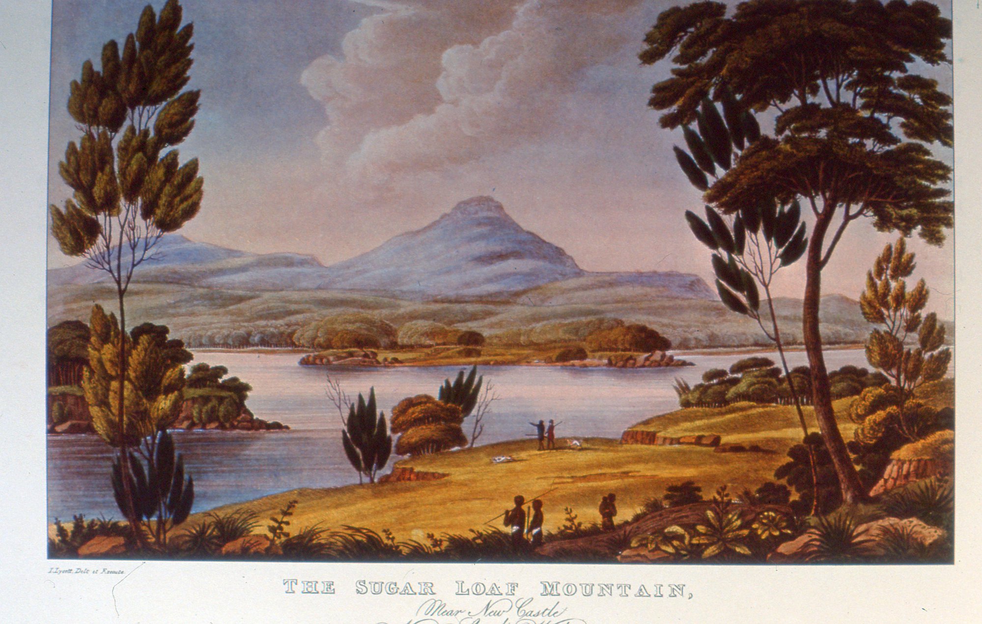 The Sugar Loaf Mountain, near New Castle [sic], New South Wales by Joseph Lycett, [C917-0020]. Living Histories, accessed 15/04/2026, https://livinghistories.newcastle.edu.au/nodes/view/38169