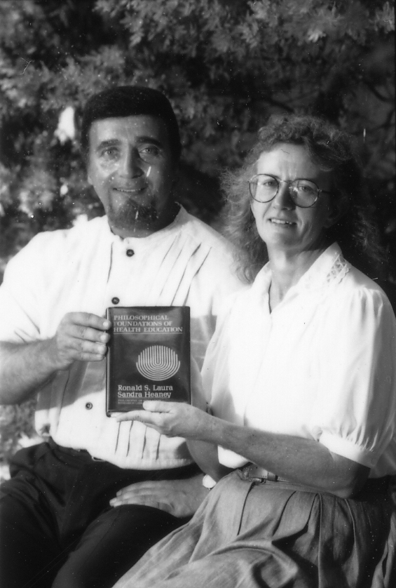 Professor Ron Laura and Ms. Sandra Heaney with the book they wrote “Philosophical Foundations of Health Education” - 1991