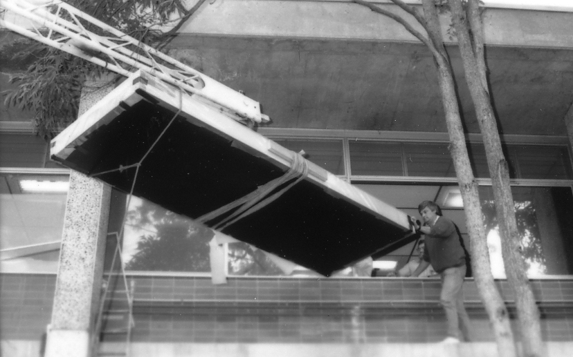 A "Vibration Isolation Table" weighing in the vicinity of 550kg was lifted by a crane into a first floor window of the Physics Building, the University of Newcastle, Australia - 1992