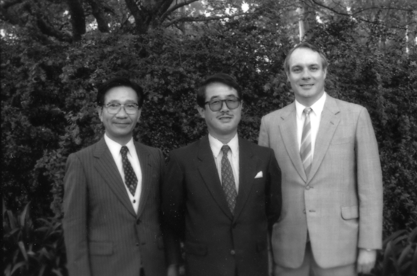 Professor Leith Morton and Professor Kiyoharu Ono (left) and an unidentified Japanese academic - 1992