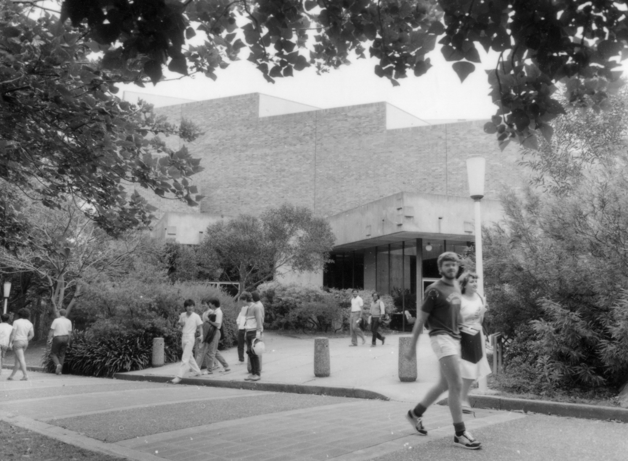 UON Photographer, Students outside The Great Hall, the University of Newcastle, Australia, [P3026-7k]. Living Histories, accessed 19/03/2026, https://livinghistories.newcastle.edu.au/nodes/view/39200