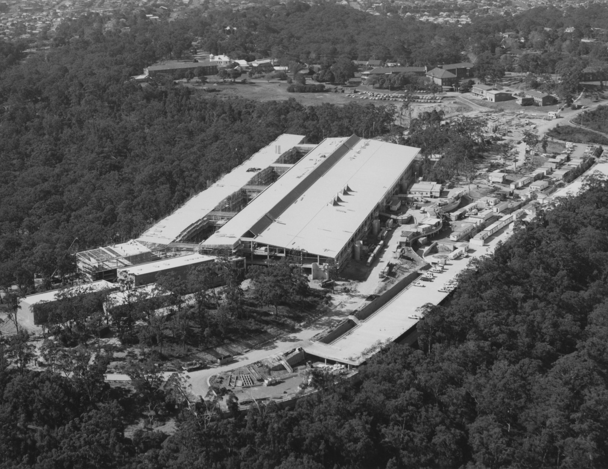 Aerial view of the John Hunter Hospital during its construction, New Lambton, Australia