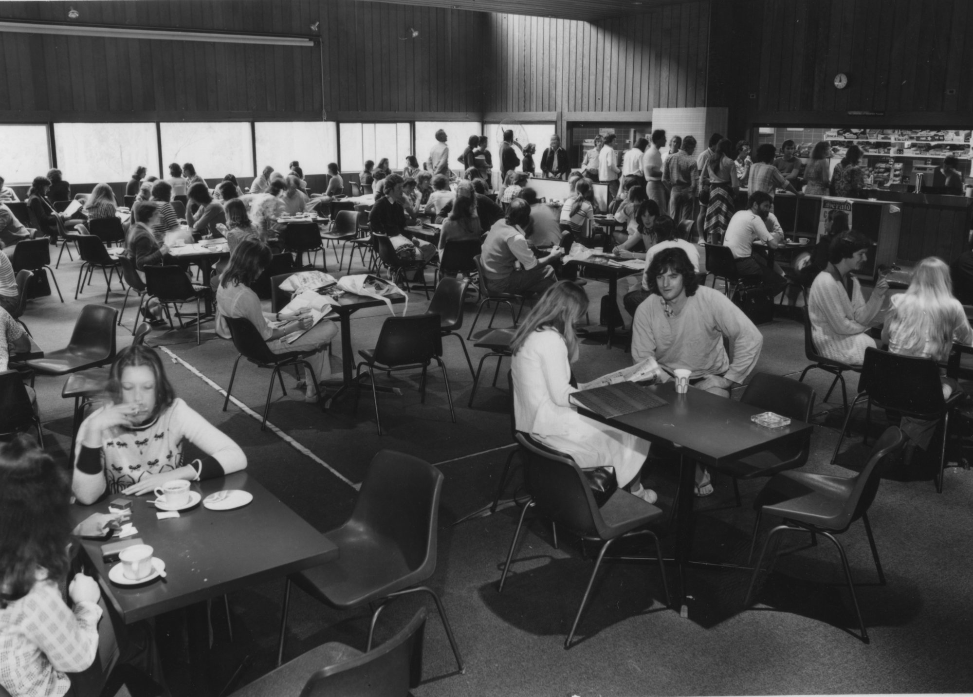 Students relaxing in the cafeteria of the Student Union Building, the University of Newcastle, Australia, [P3032-12]. Living Histories, accessed 16/02/2026, https://livinghistories.newcastle.edu.au/nodes/view/39671