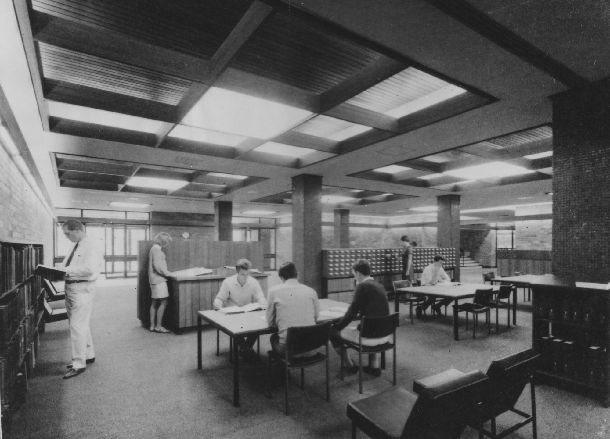 People studying in the card catalogue reference room - Auchmuty Library, the University of Newcastle, Australia - c.1980s