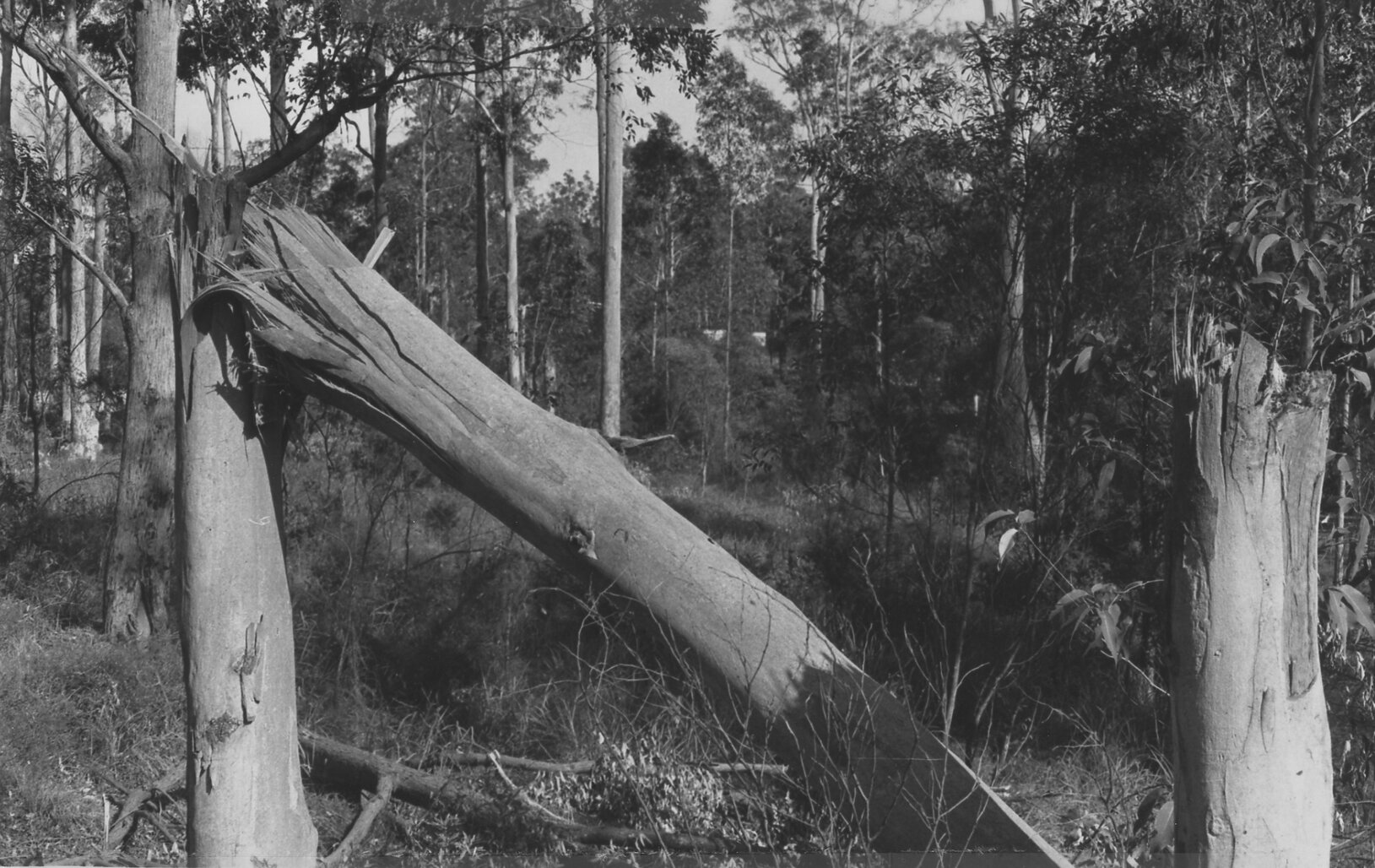 A fallen tree on the Callaghan Campus grounds, the University of Newcastle, Australia, [P3027-79]. Living Histories, accessed 25/01/2026, https://livinghistories.newcastle.edu.au/nodes/view/39812