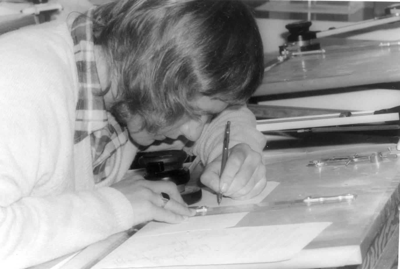An Industrial Arts student works at a drafting machine, Newcastle Teachers' College, Australia, [P3051-17]. Living Histories, accessed 11/02/2026, https://livinghistories.newcastle.edu.au/nodes/view/40131