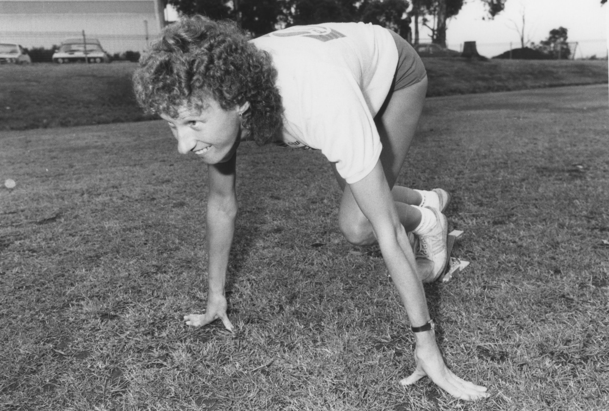 Kim Jenkins taking mark in a running race, the University of Newcastle, Australia