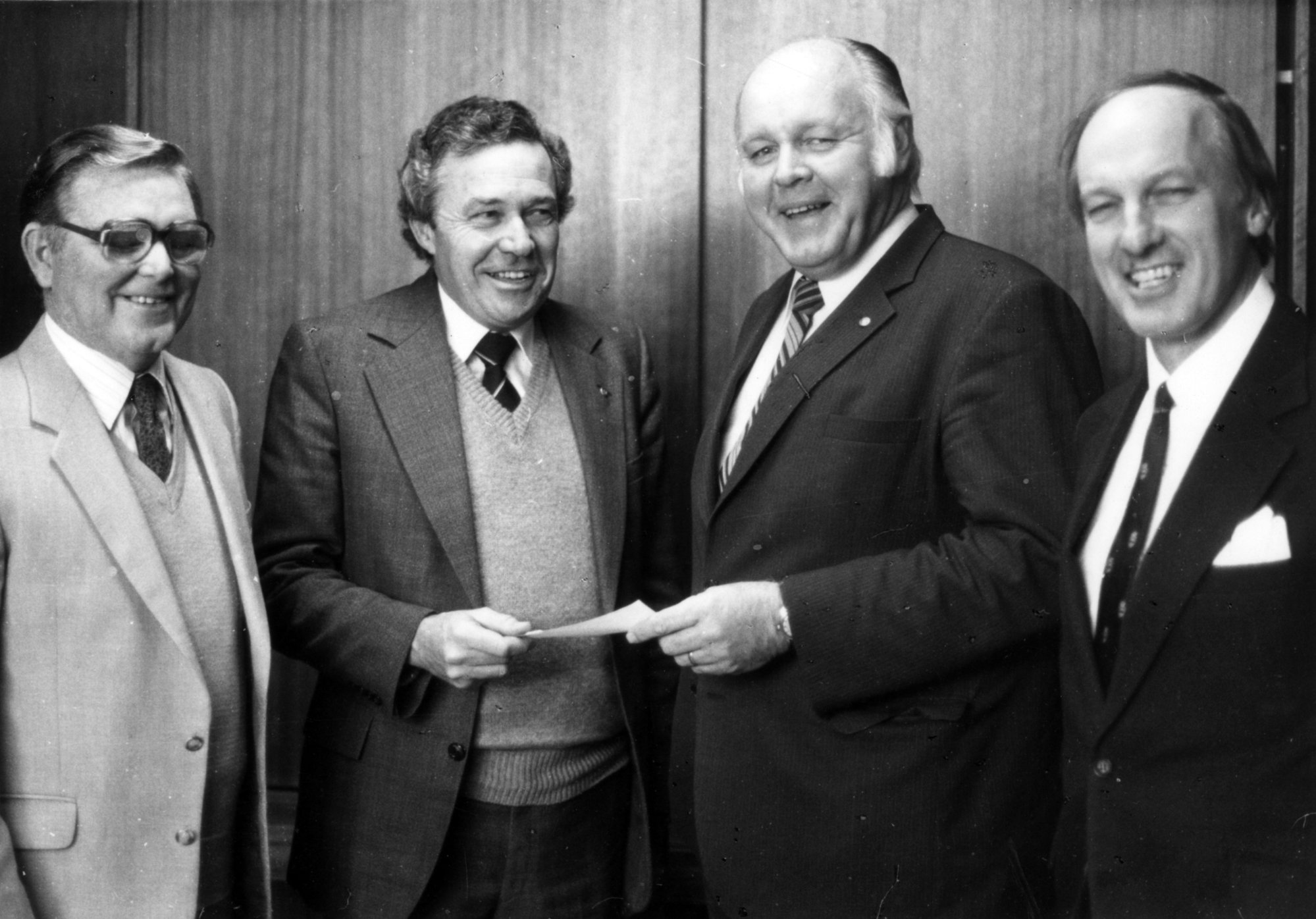 Mr. K. Mathieson, Mr. Ian Nelmes, Mr Brian Relf and Professor Saxon White, the University of Newcastle, Australia - Uni News Vol. 9 No. 12 (Sport), [P3007-6]. Living Histories, accessed 16/04/2026, https://livinghistories.newcastle.edu.au/nodes/view/40571