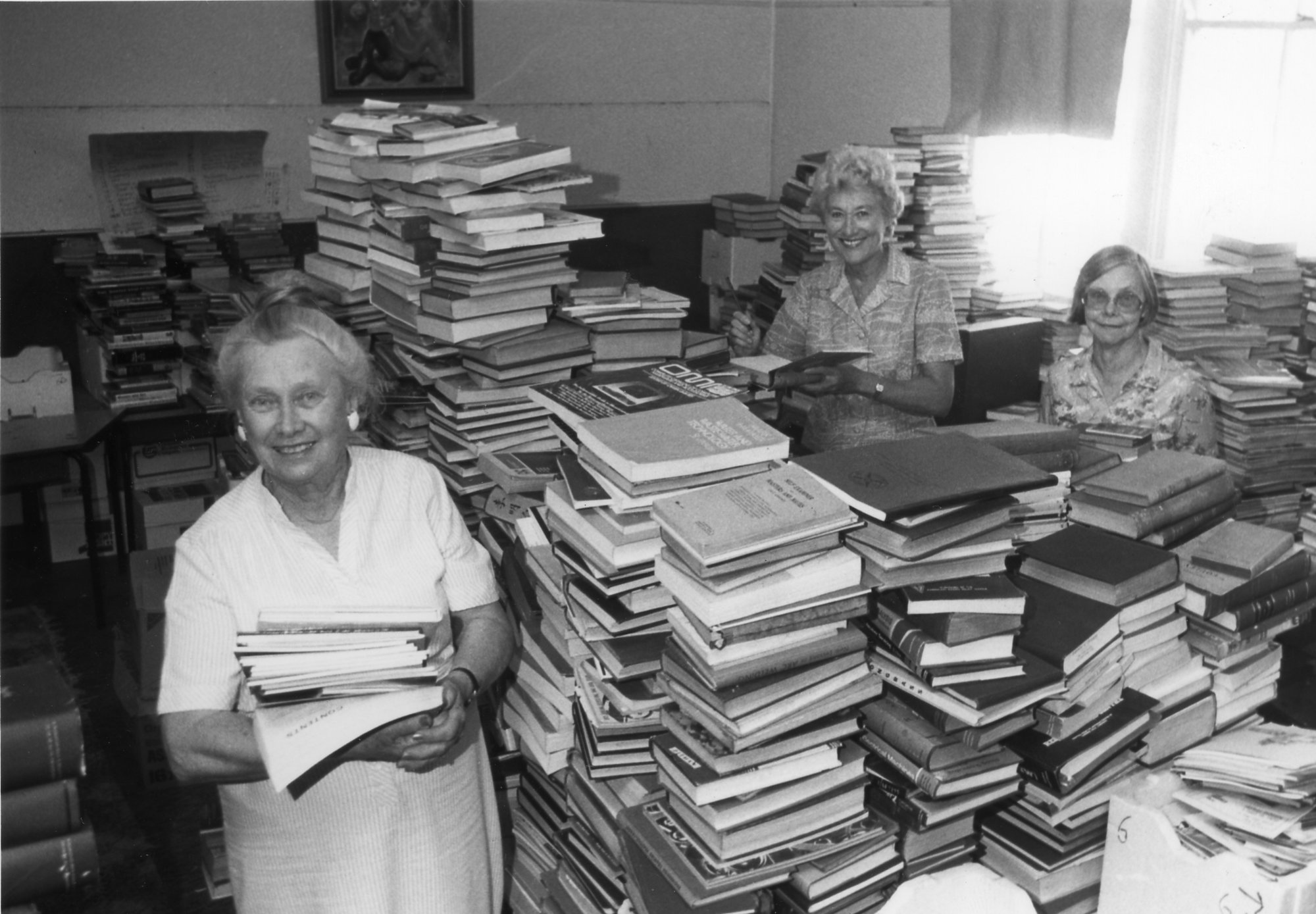 An group of unidentified women preparing for the Friends of the University Book Fair, the University of Newcastle, Australia