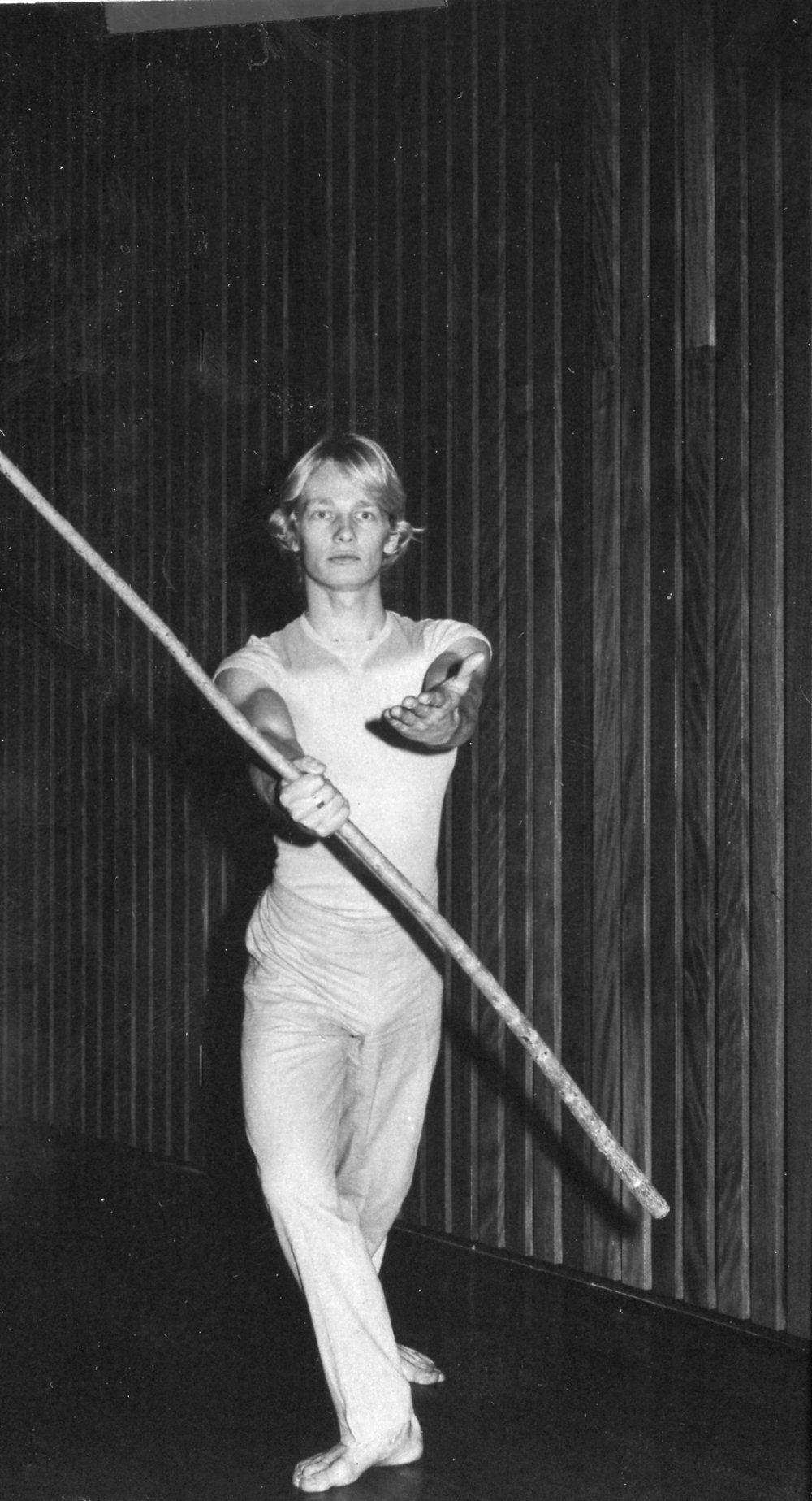 An unidentified actor holds a balancing pole, the University of Newcastle, Australia, [P3000-38a]. Living Histories, accessed 20/03/2026, https://livinghistories.newcastle.edu.au/nodes/view/41020