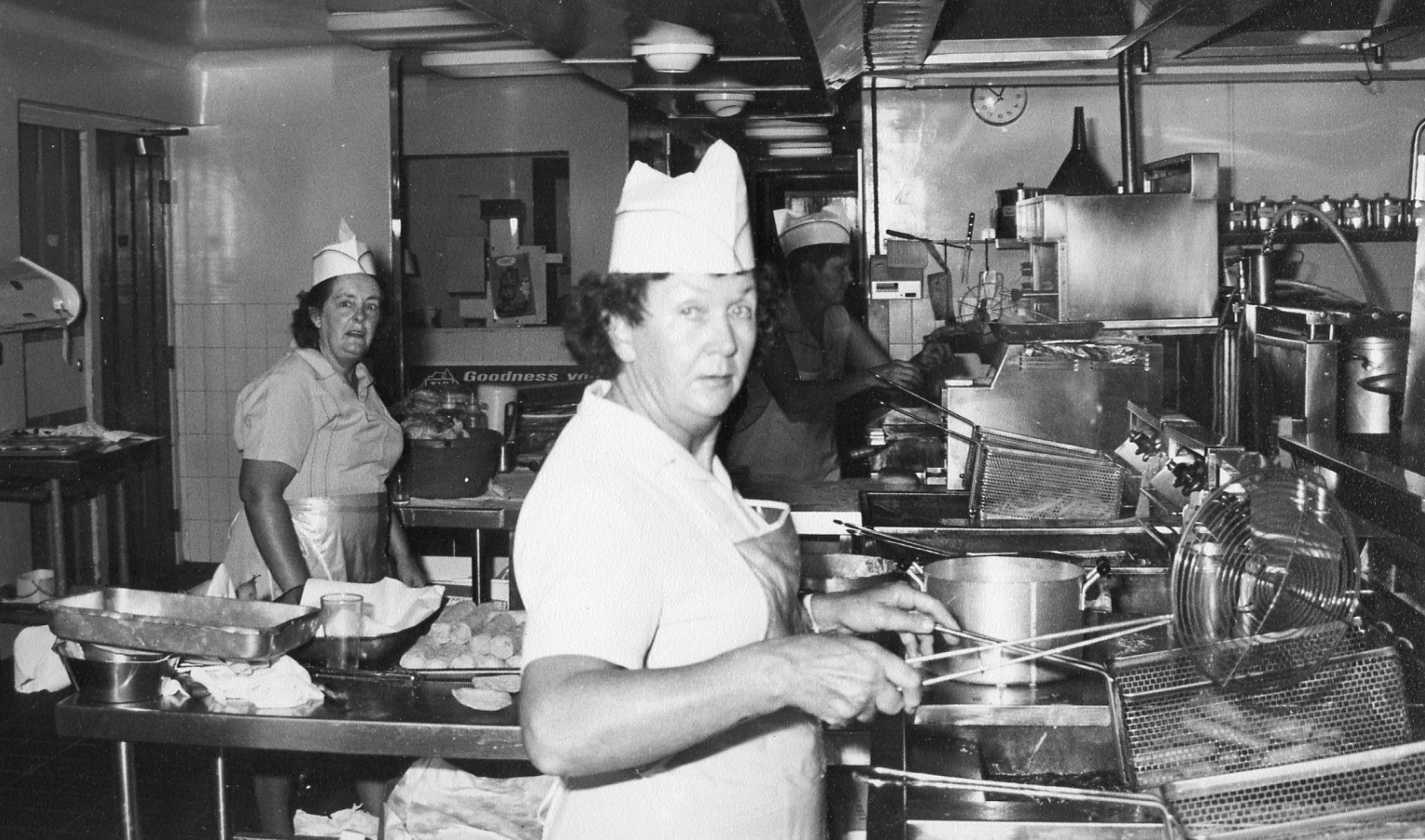 Unidentified Cafeteria staff preparing meals in the Shortland Union Building, the University of Newcastle, Australia, [P2999-35]. Living Histories, accessed 08/02/2026, https://livinghistories.newcastle.edu.au/nodes/view/41163