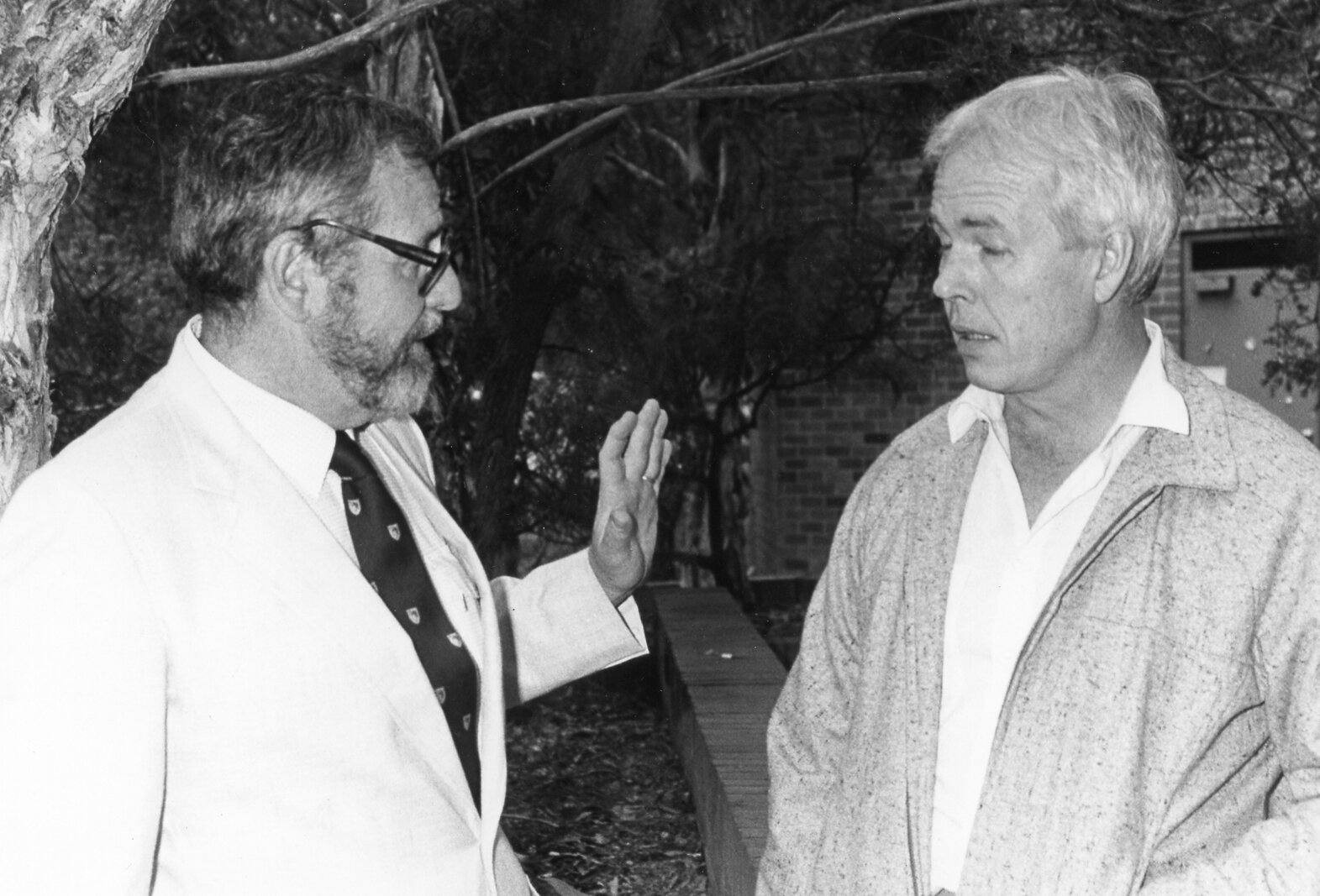 Professor Burnim, Professor of Drama and Oratory at Tufts University, Massachusetts, visits the Department of Drama (photographed with Professor Emeljanow), the University of Newcastle, Australia - 1988