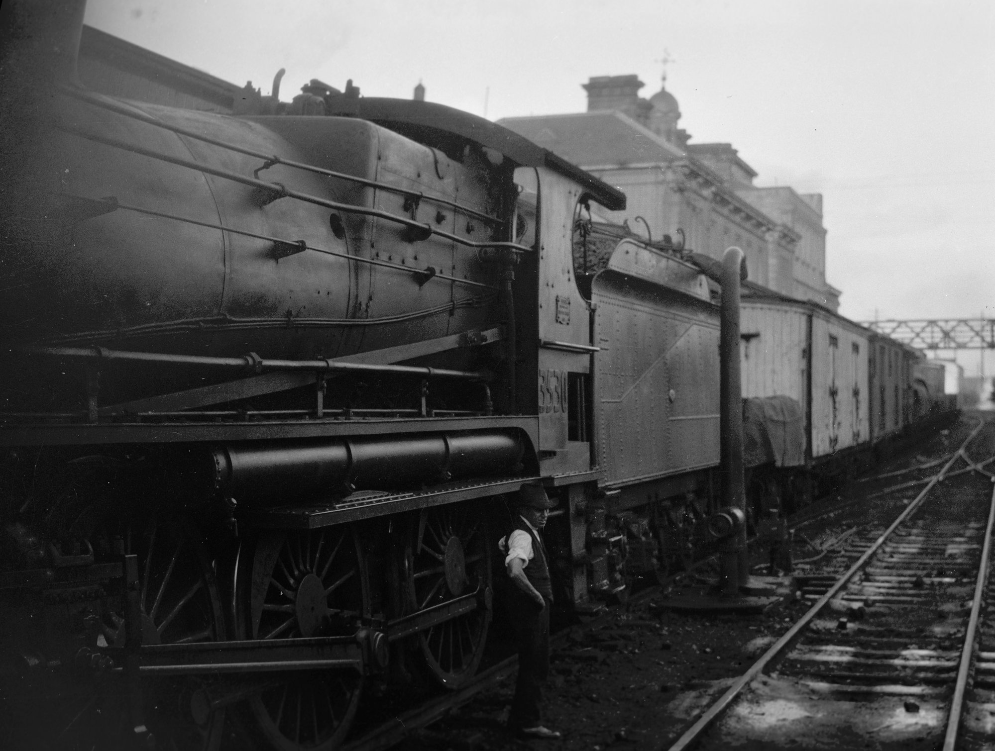NSWGR C35 Class No. 3530 4-6-0 Type Express Passenger Locomotive on goods train at Newcastle Station, [1930s] ([1930s]), [ARHSBox022_0678 ]. Living Histories, accessed 12/03/2026, https://livinghistories.newcastle.edu.au/nodes/view/4158