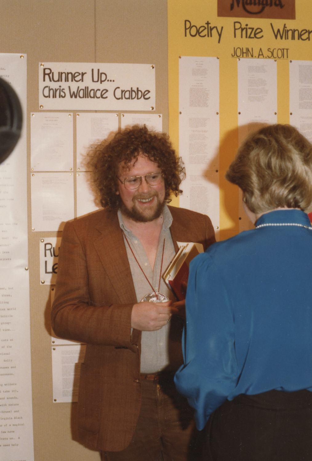 John Scott is interviewed after receiving a poetry prize in 1984, the University of Newcastle, Australia