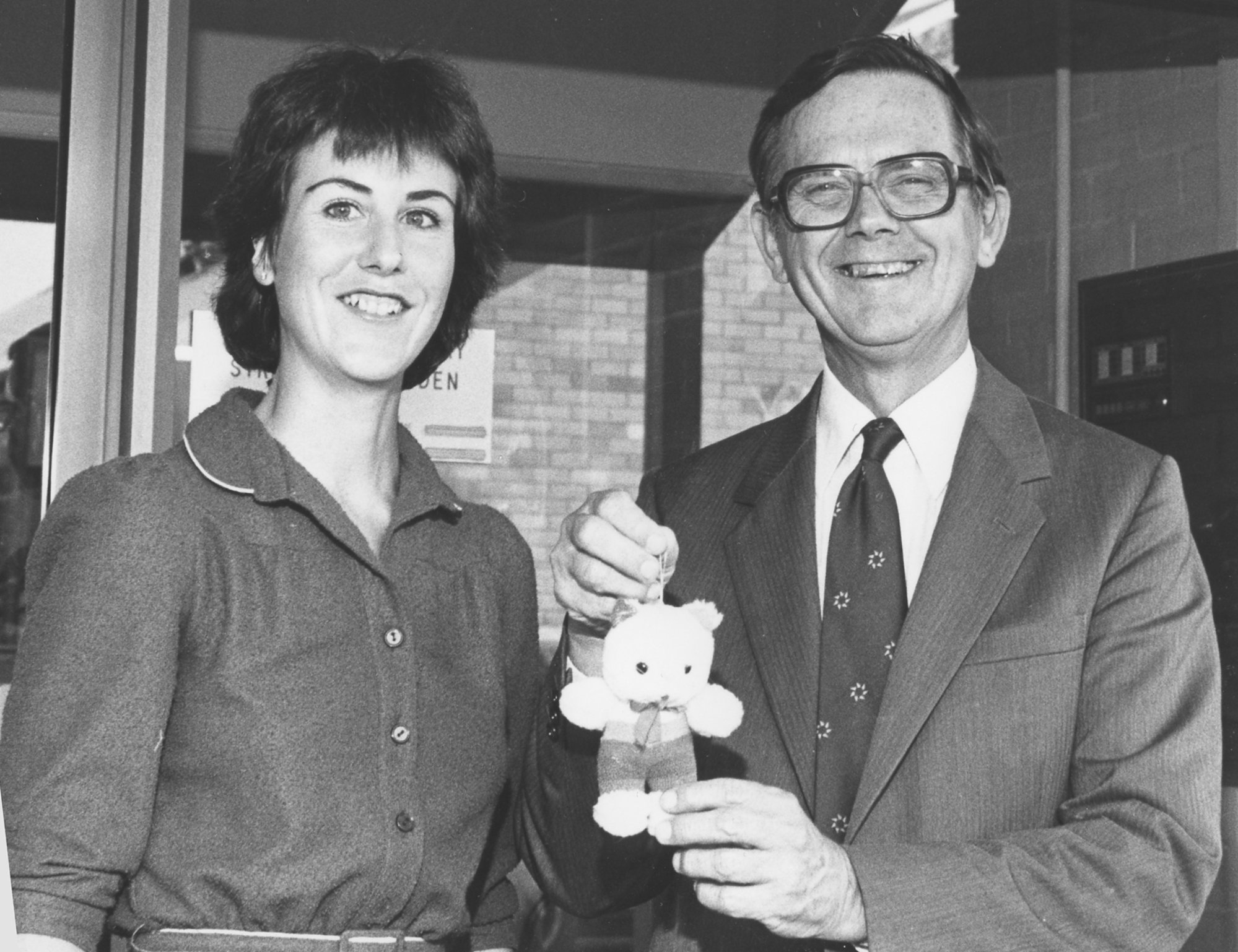 Vice-Chancellor, Professor Don George with the Animal House Director, Robyn Gentle at the opening of the Centre, the University of Newcastle, Australia, 1985 (2 May 1985), [P2996-35]. Living Histories, accessed 15/04/2026, https://livinghistories.newcastle.edu.au/nodes/view/41972