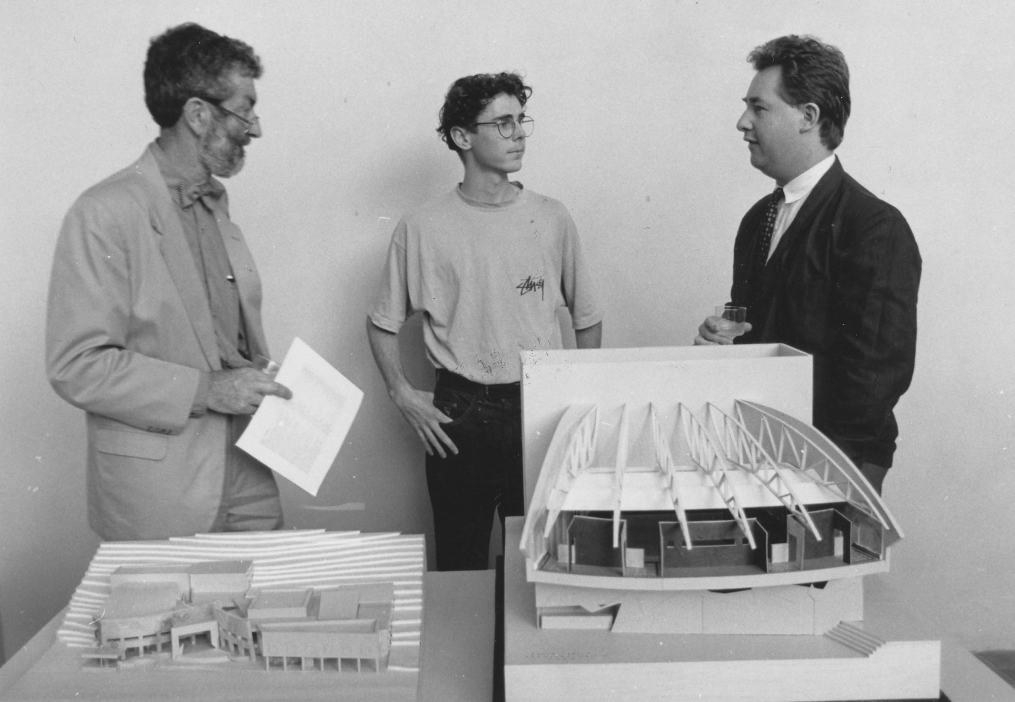 Suters Architects: Brian Suters (left) and David Rose (right) present the Architecture Prize to David Boyle, the University of Newcastle, Australia - 1990, [P2995-125]. Living Histories, accessed 19/03/2026, https://livinghistories.newcastle.edu.au/nodes/view/42100