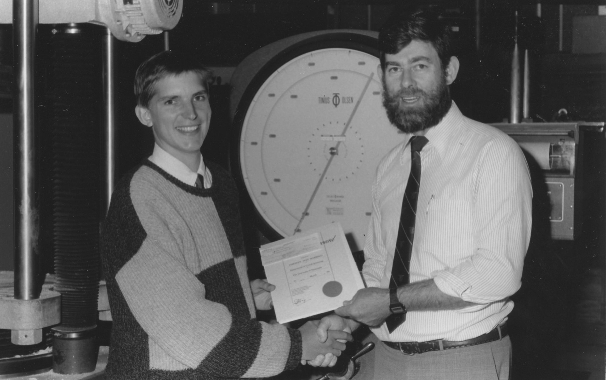 Galvanizers Prize – Student Tim Harrold with Assoc/Professor John Fryer, the University of Newcastle, Australia - 1990