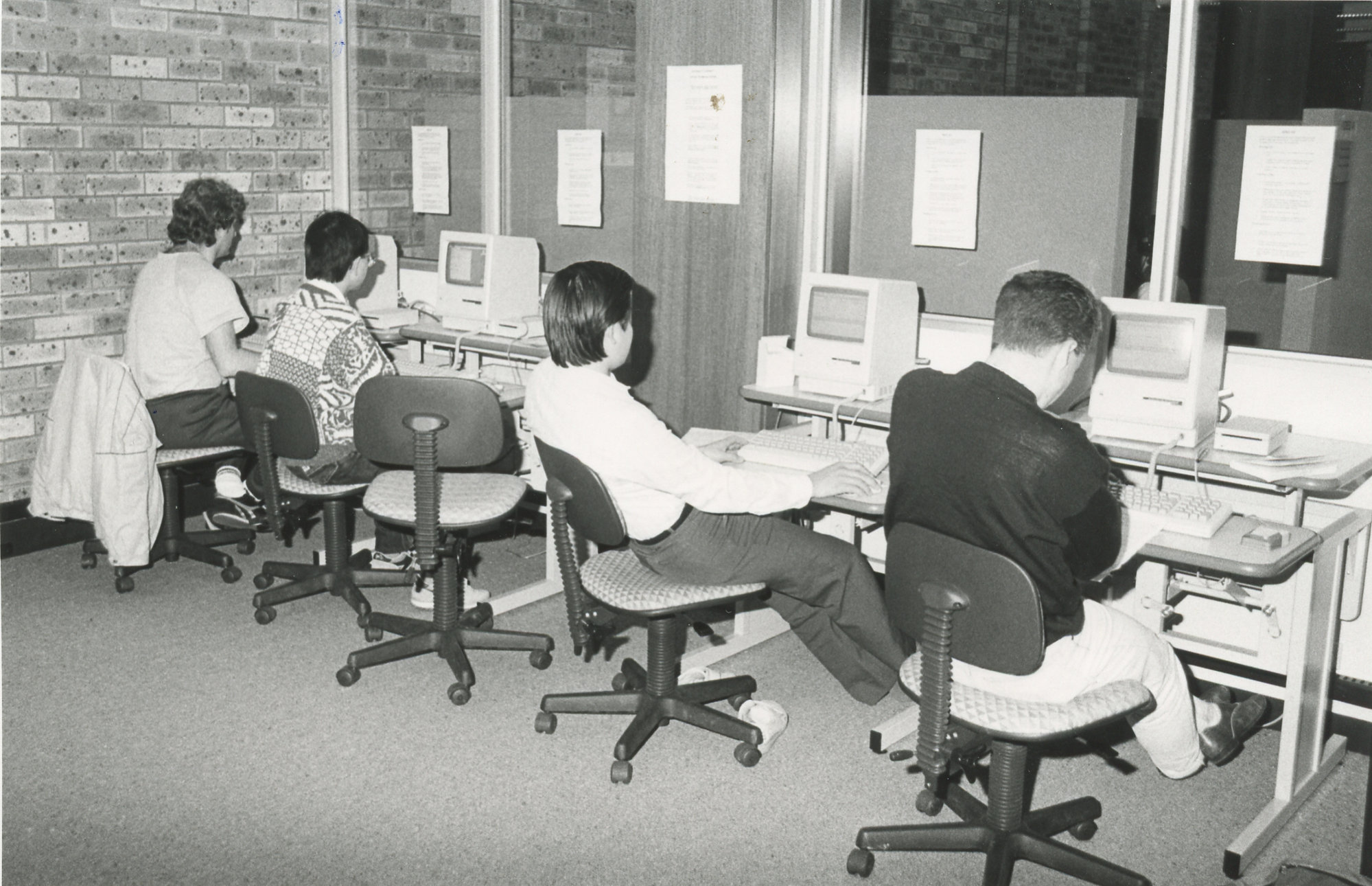 Students using the new Audio-Visual (micro-terminal) section in the Auchmuty Library, the University of Newcastle, Australia - 1988, [P2994-15]. Living Histories, accessed 16/03/2026, https://livinghistories.newcastle.edu.au/nodes/view/42271
