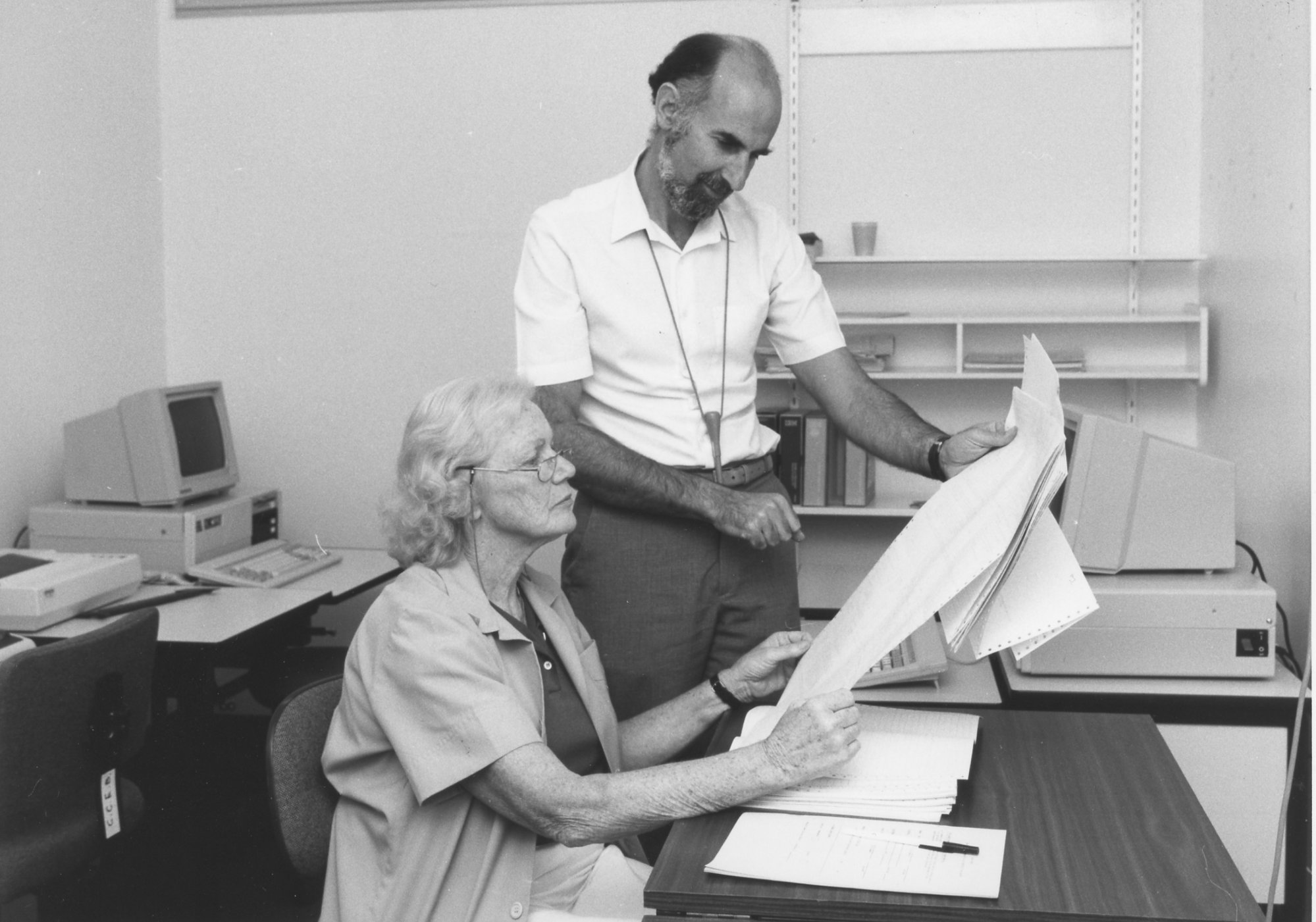 Professor Richard Heller with an unidentified colleague conducts research on heredity versus environmental factors in heart disease, the University of Newcastle, Australia
