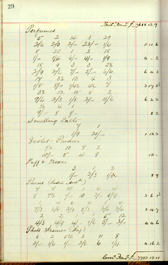 B10251: Page 29 (left) from Ledger - Drapery Department Stock, 1905, [51p29l]. Living Histories, accessed 10/02/2026, https://livinghistories.newcastle.edu.au/nodes/view/42930