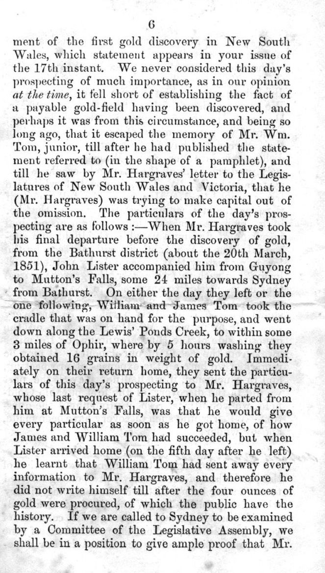 Page 6 from "History of the discovery of the first payable gold-field (Ophir) in Australia"