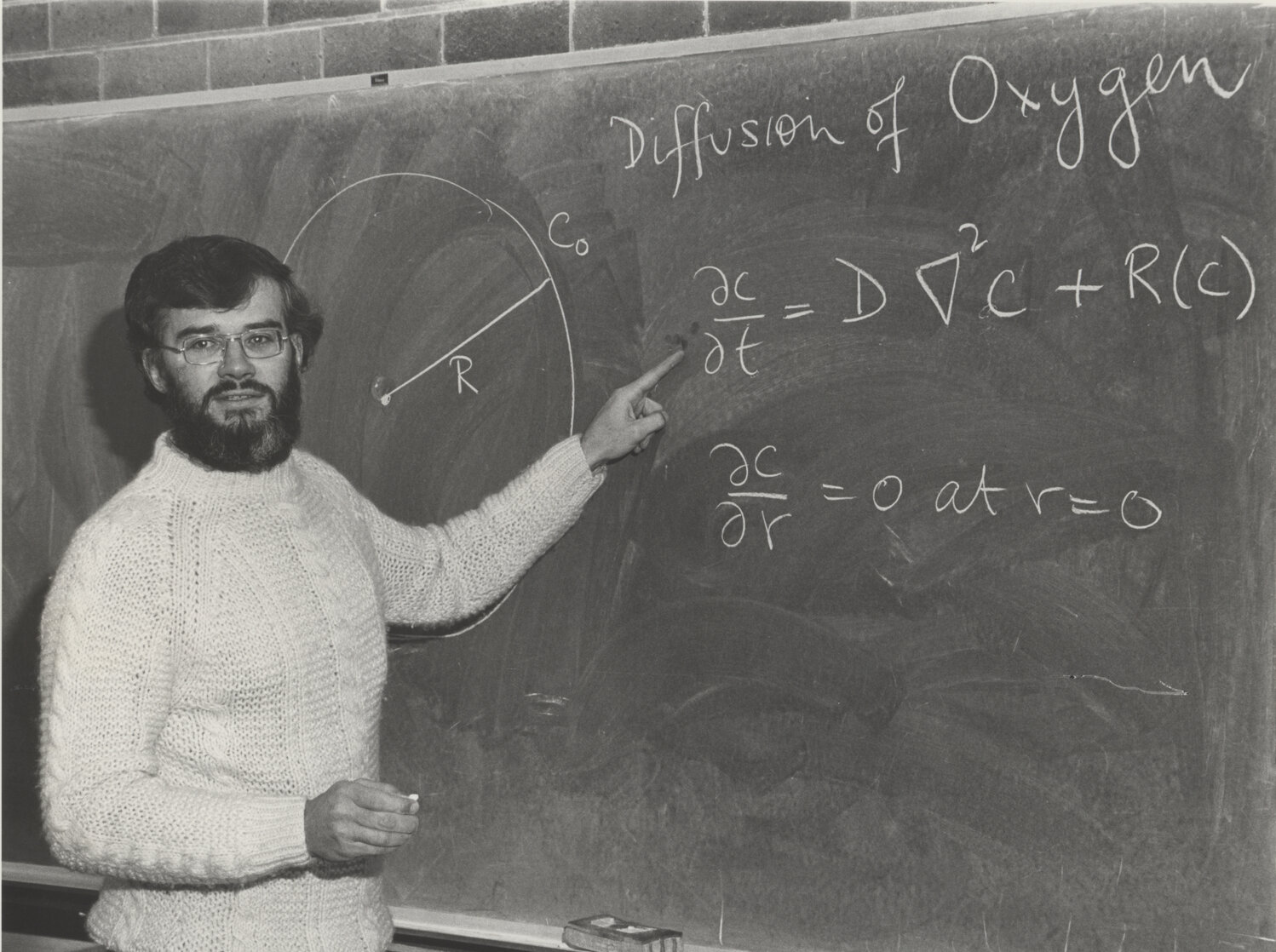 An unidentified lecturer demonstrates an equation to calculate the Diffusion of Oxygen, the University of Newcastle, Australia
