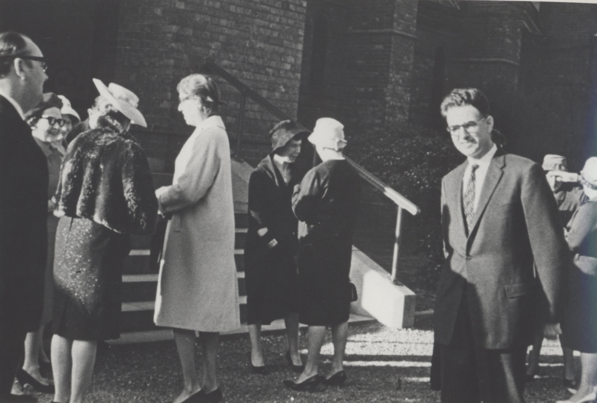 Professor James Auchmuty (far left), Dennis Biggins (Right Foreground) attend a ceremony at Christ Church Cathedral, Newcastle, Australia, [P2924]. Living Histories, accessed 22/01/2026, https://livinghistories.newcastle.edu.au/nodes/view/43657