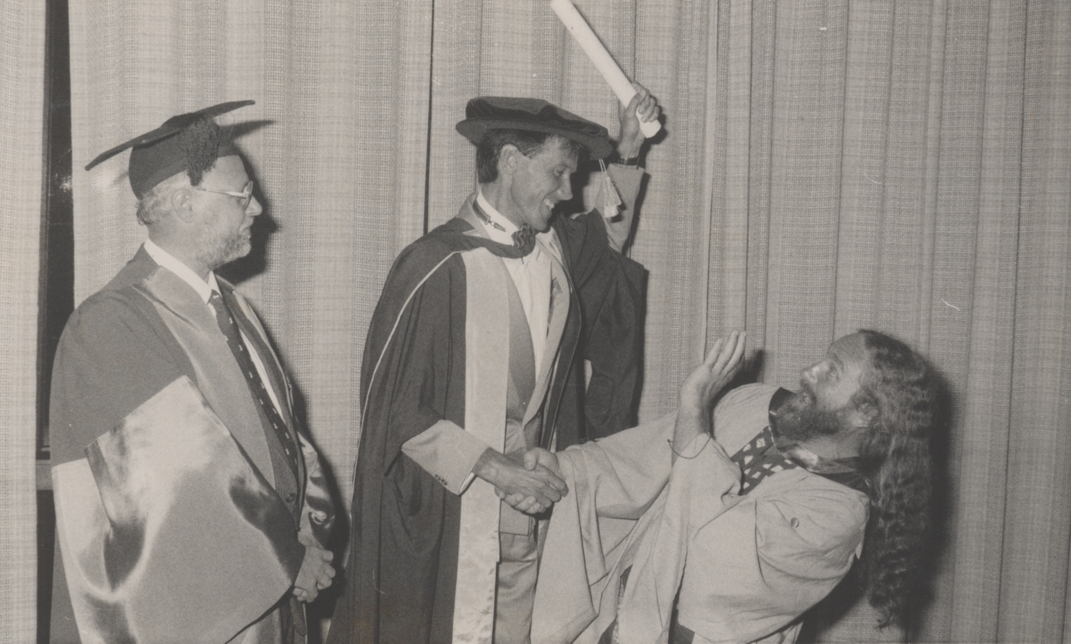 Dr Albert Nymeyer in a playful moment at a graduation ceremony, the University of Newcastle, Australia - 1986