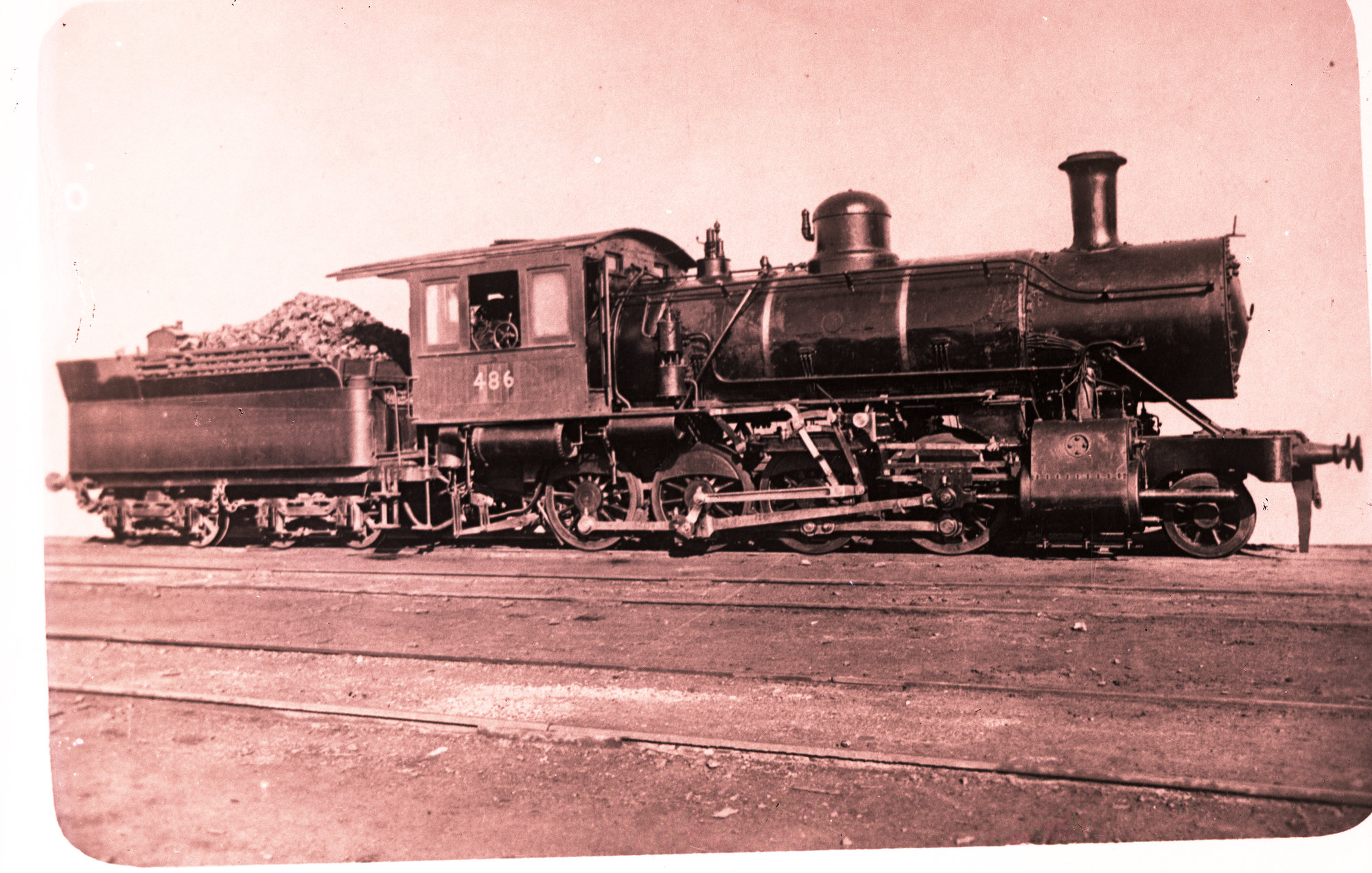 NSWGR Class J-483 Class No. 486, 2-8-0 Consolidation Type steam locomotive, [1891] ([1891]), [ARHSBox016_0521 ]. Living Histories, accessed 19/02/2026, https://livinghistories.newcastle.edu.au/nodes/view/4374