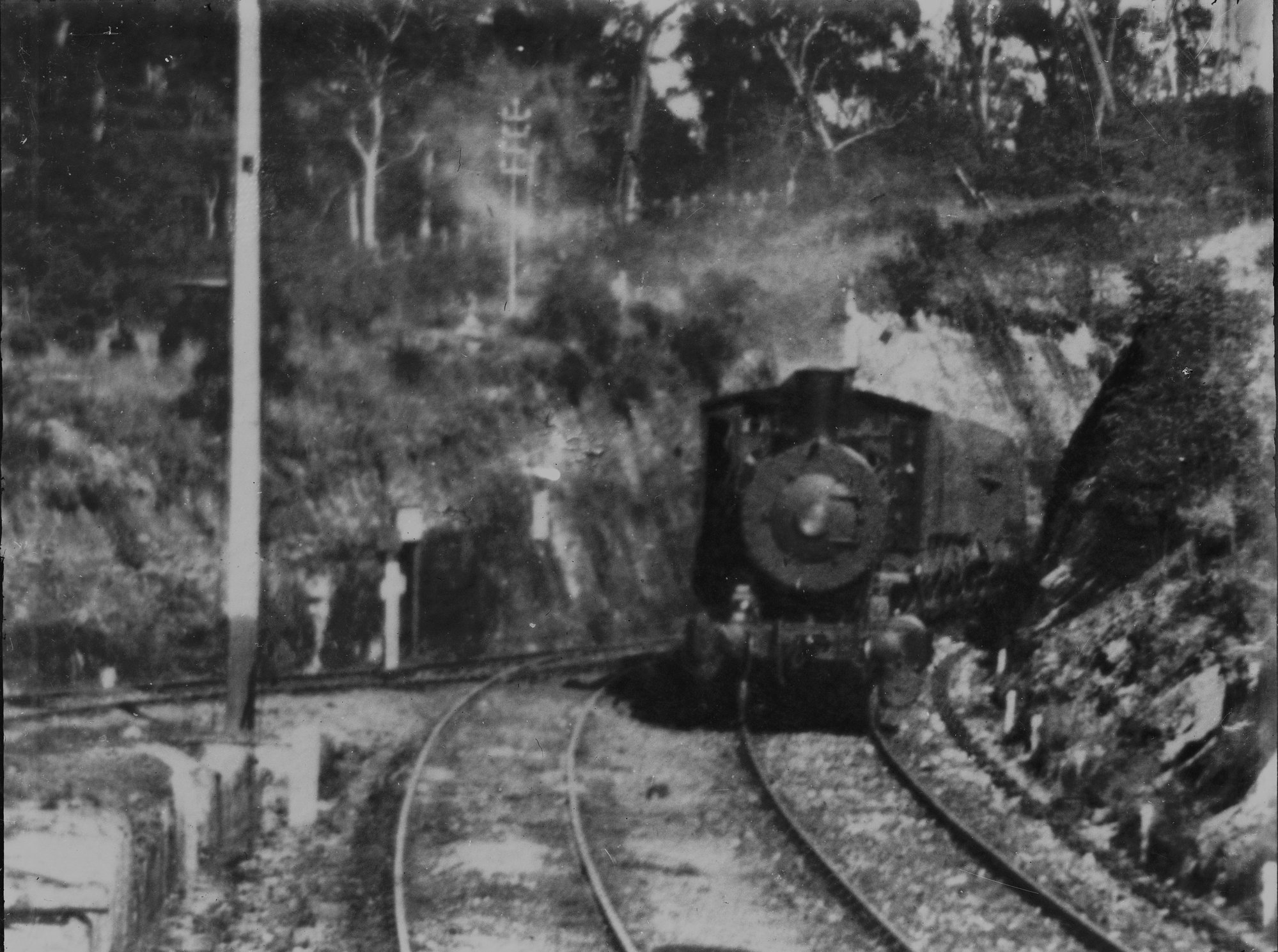 NSWGR J-486 Class, 2-8-0 Consolidation Type locomotive on up goods train exiting Clarence Tunnel near Lithgow, NSW, [1900]