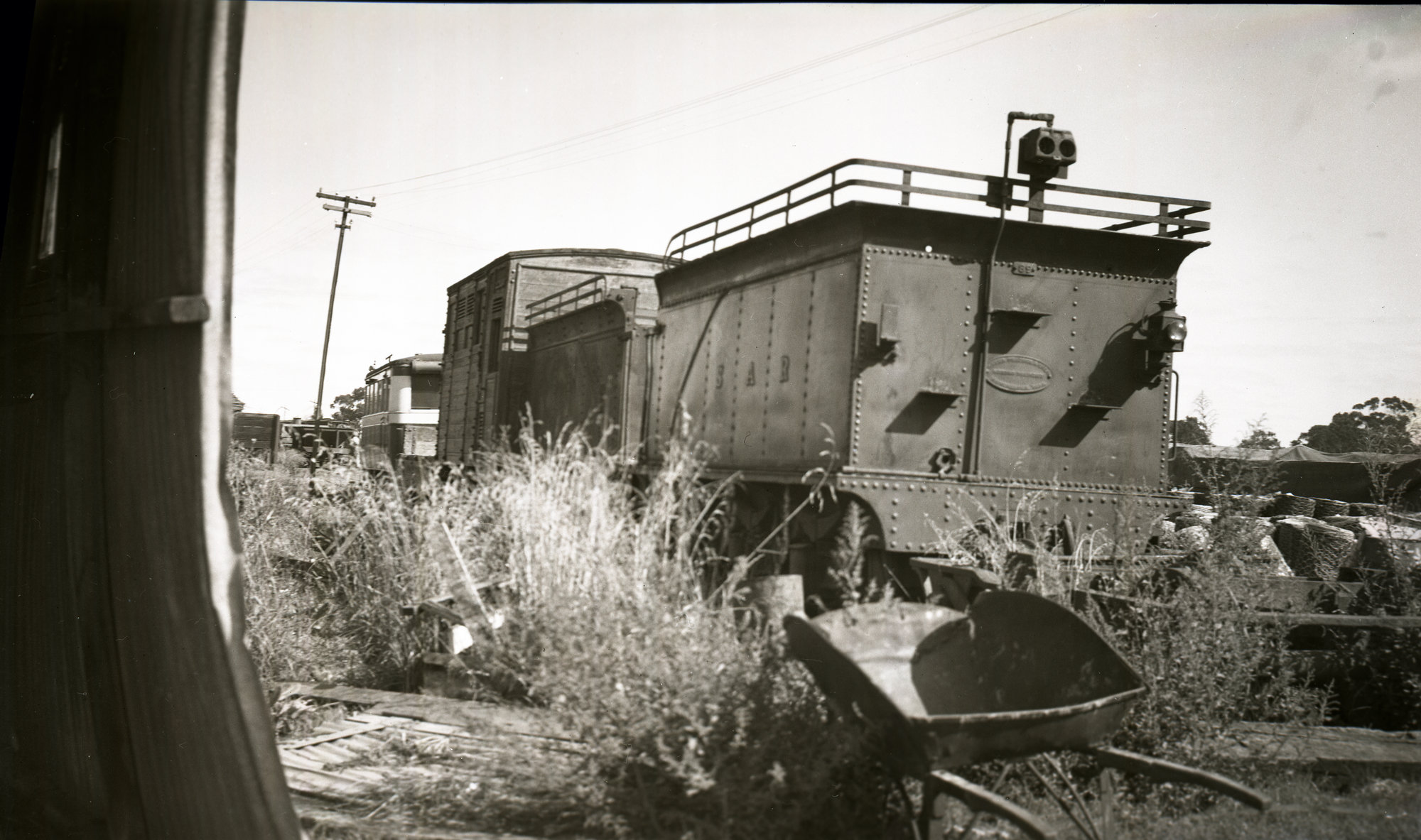 SAR locomotive tender, with Oj horsebox wagon and Fageol railcar. Looks to be Naracoorte [n.d]