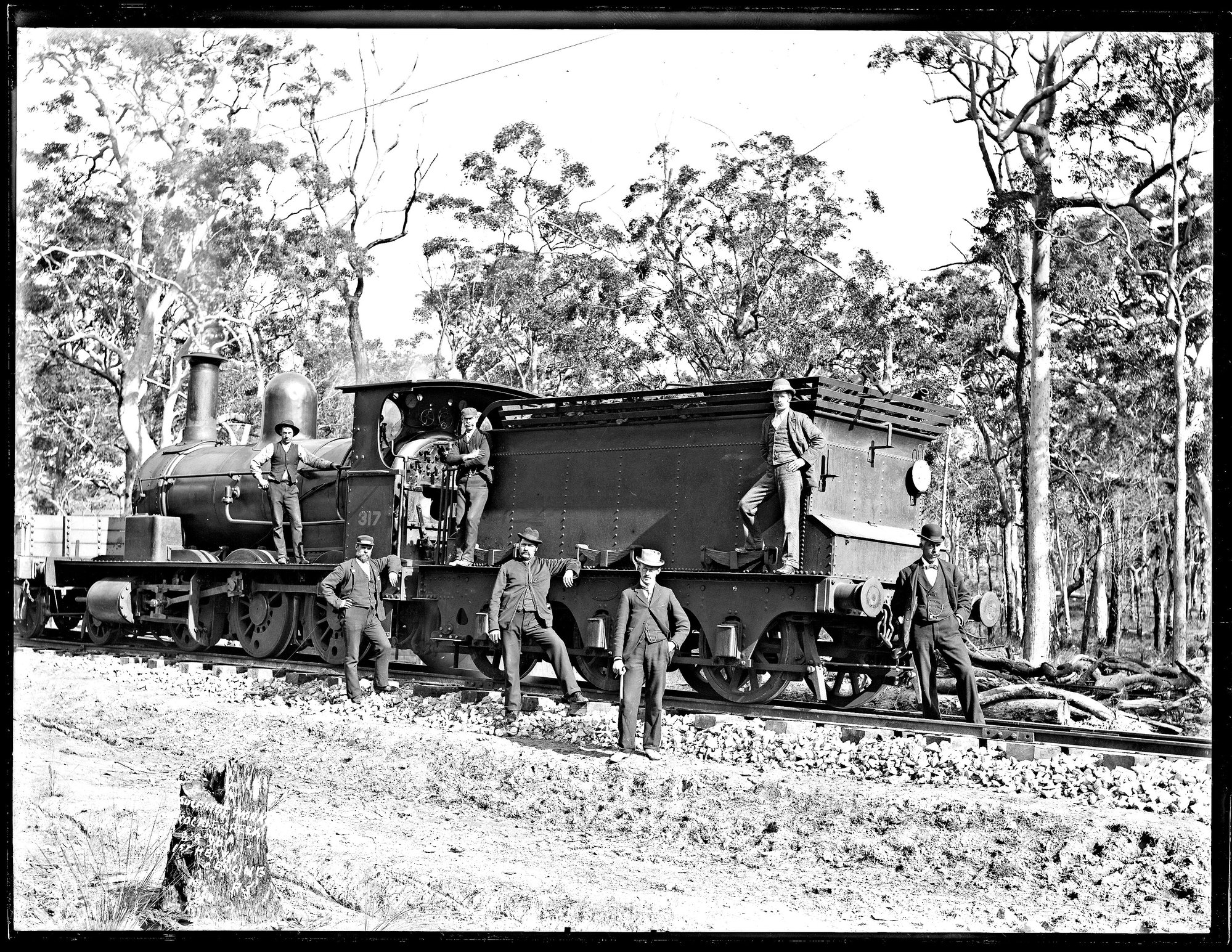 Ralph Snowball, Number 317 engine, the first heavy engine to the Sulphide Works, Cockle Creek, NSW, 8 August 1896 (8th August 1896), [ASGN0794-B37]. Living Histories, accessed 17/04/2026, https://livinghistories.newcastle.edu.au/nodes/view/44347