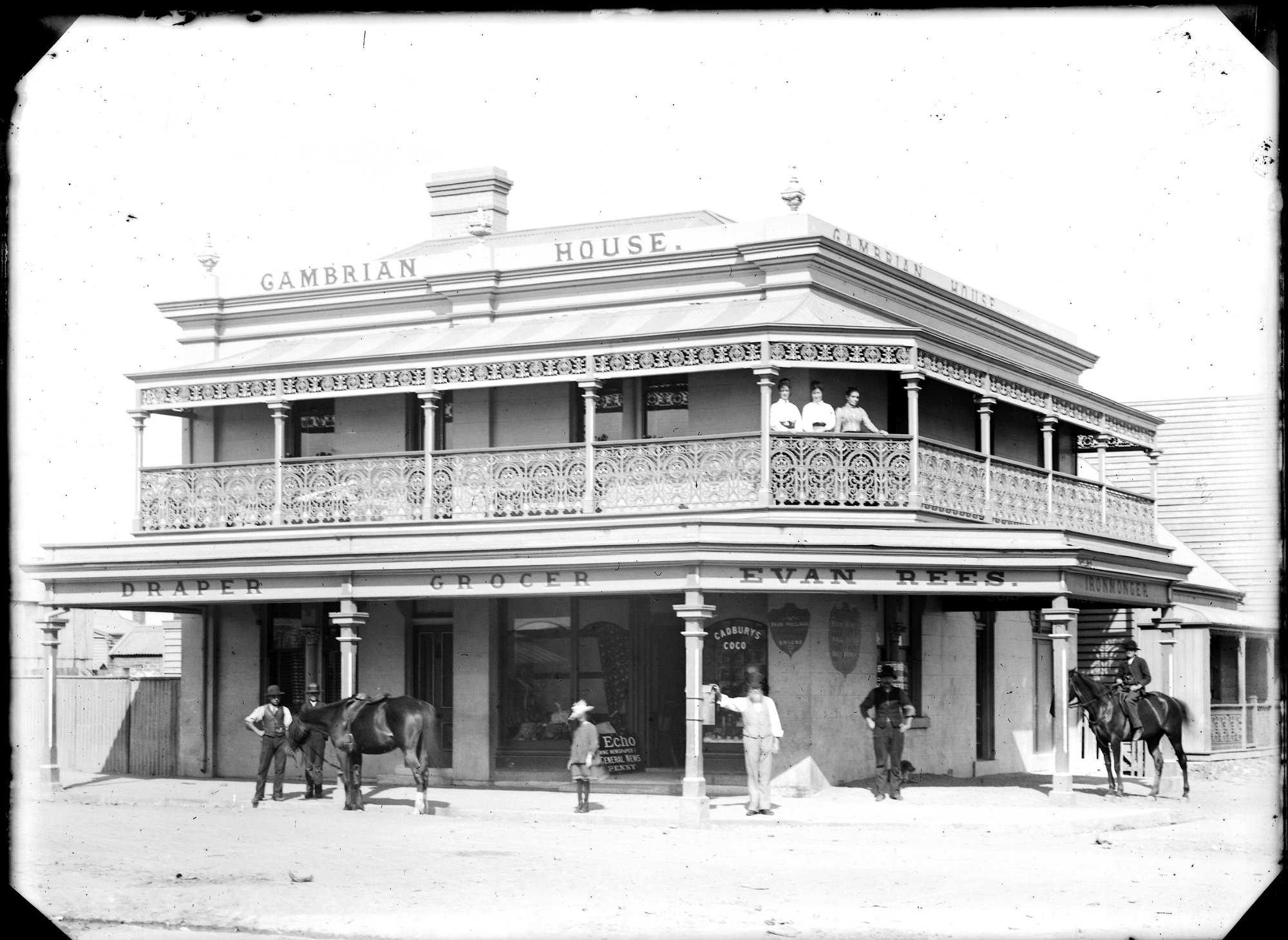Ralph Snowball, Gambrian House, Evan Rees' Draper, Grocer, and Ironmonger store, Mitchell Street, Stockton, NSW, [n.d.], [ASGN0776-B36]. Living Histories, accessed 17/04/2026, https://livinghistories.newcastle.edu.au/nodes/view/44517