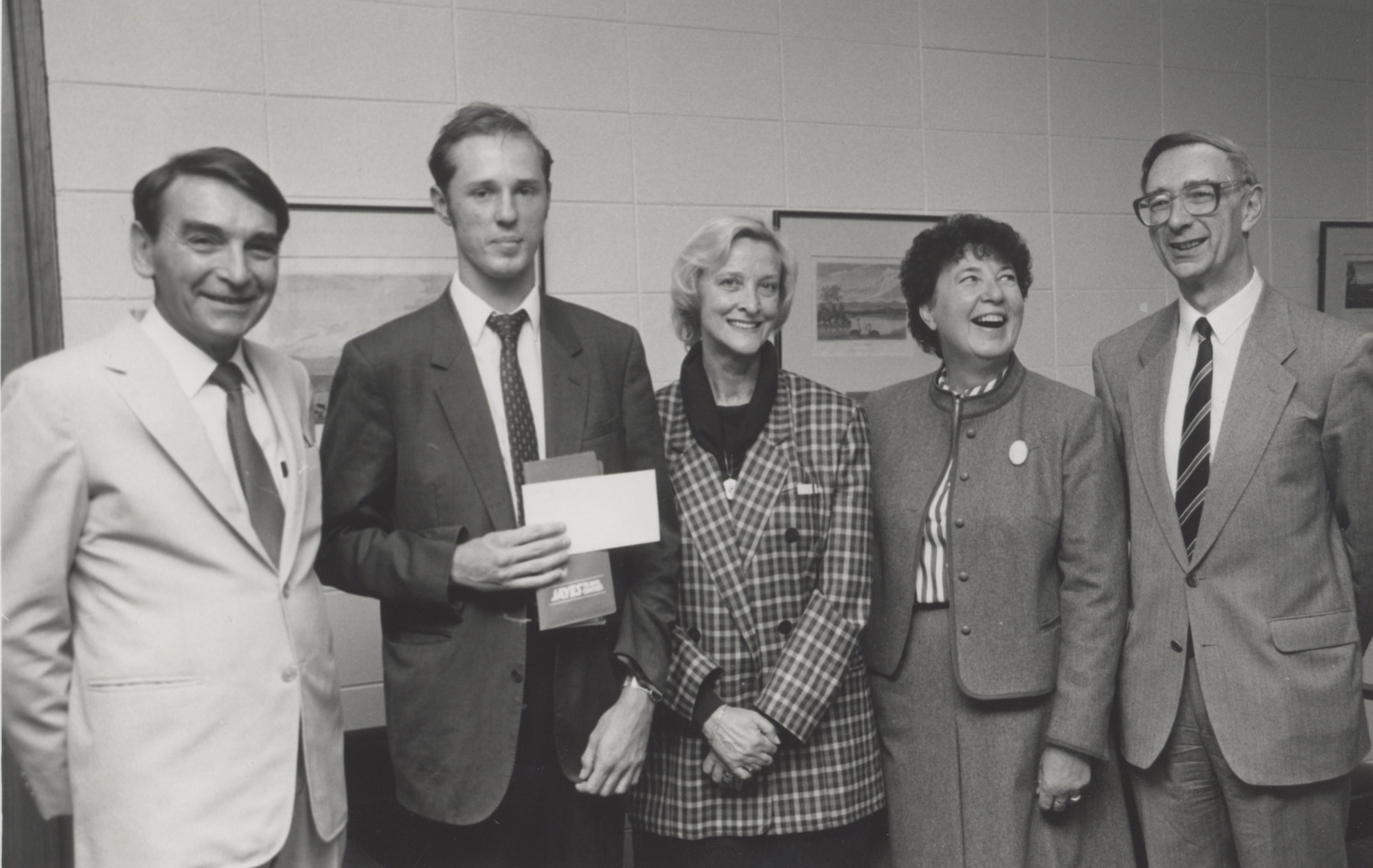 Unidentified travel scholarship recipients and academics attend a presentation ceremony with Vice-Chancellor, Professor Keith Morgan present, the University of Newcastle, Australia, [P2363]. Living Histories, accessed 11/03/2026, https://livinghistories.newcastle.edu.au/nodes/view/44589