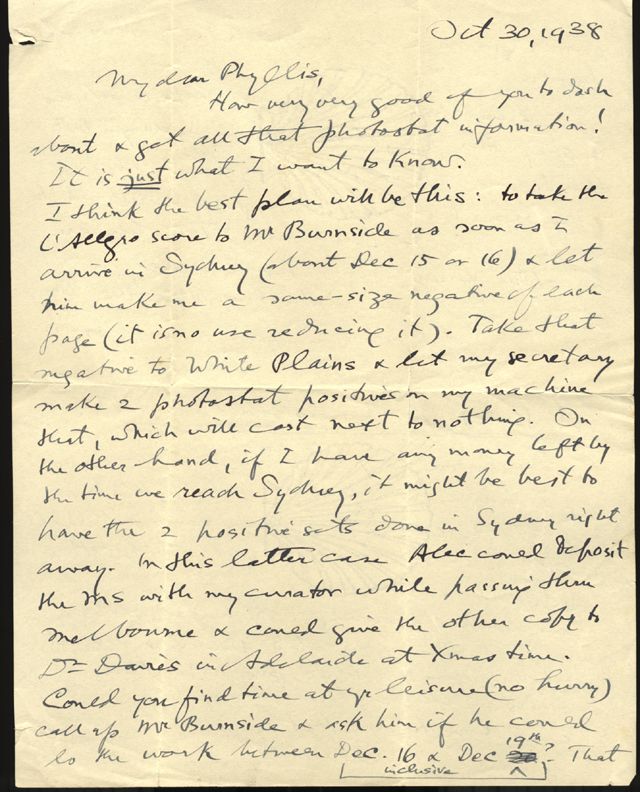 Percy Grainger to Phyllis Burnard, 30 October 1938 - Page 1
