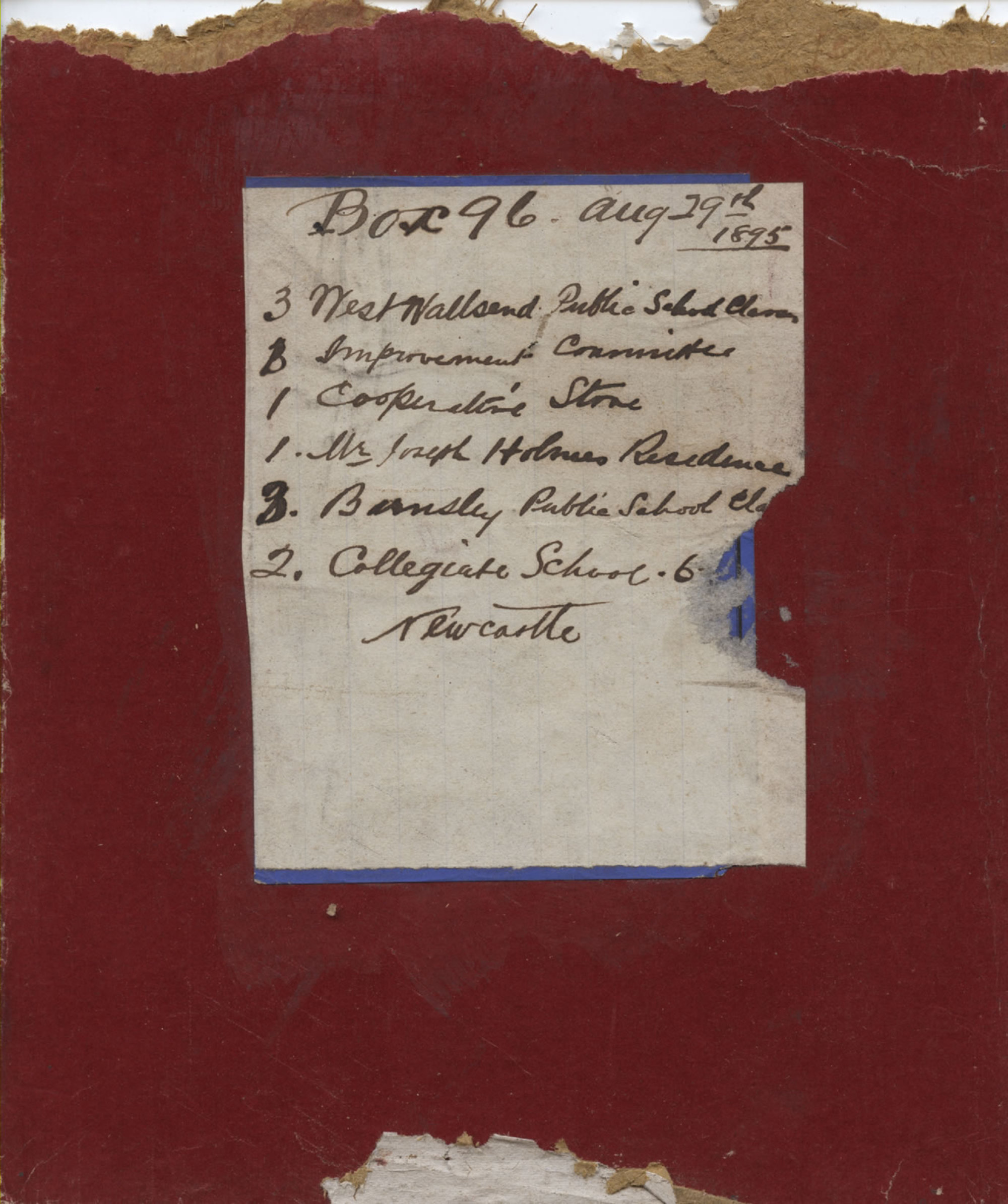 Ralph Snowball Collection, original glass plate box listing, Box 96, 29 August 1895 (29th August 1895). Living Histories, accessed 09/02/2026, https://livinghistories.newcastle.edu.au/nodes/view/45222