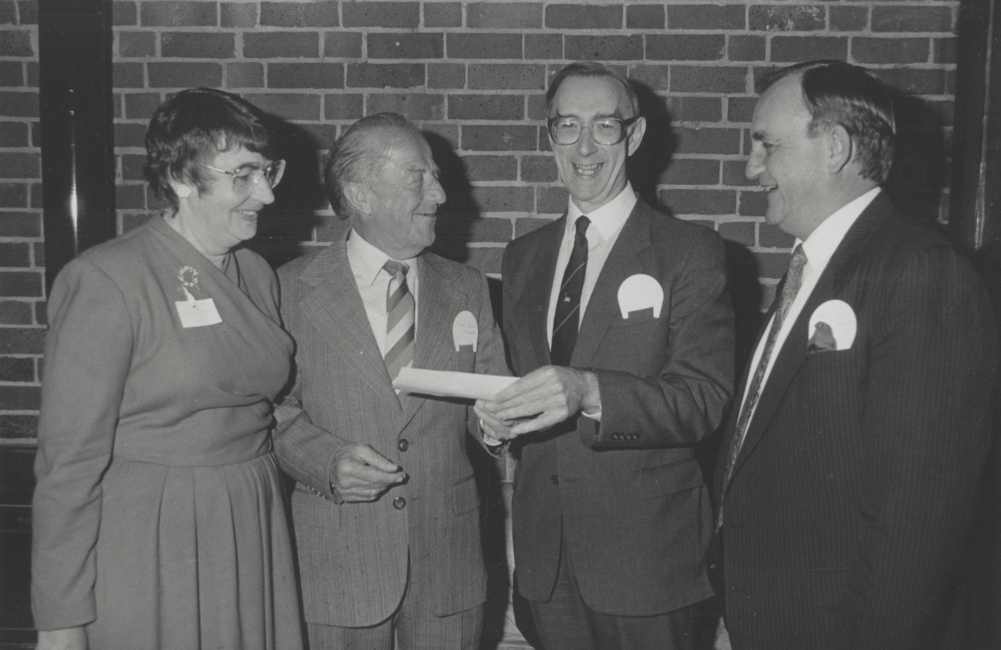 An unidentified woman with Keith Barbour (Friends of the University - second left), Vice-Chancellor, Professor Keith Morgan, Vic Levi (Warden of Convocation), the University of Newcastle, Australia