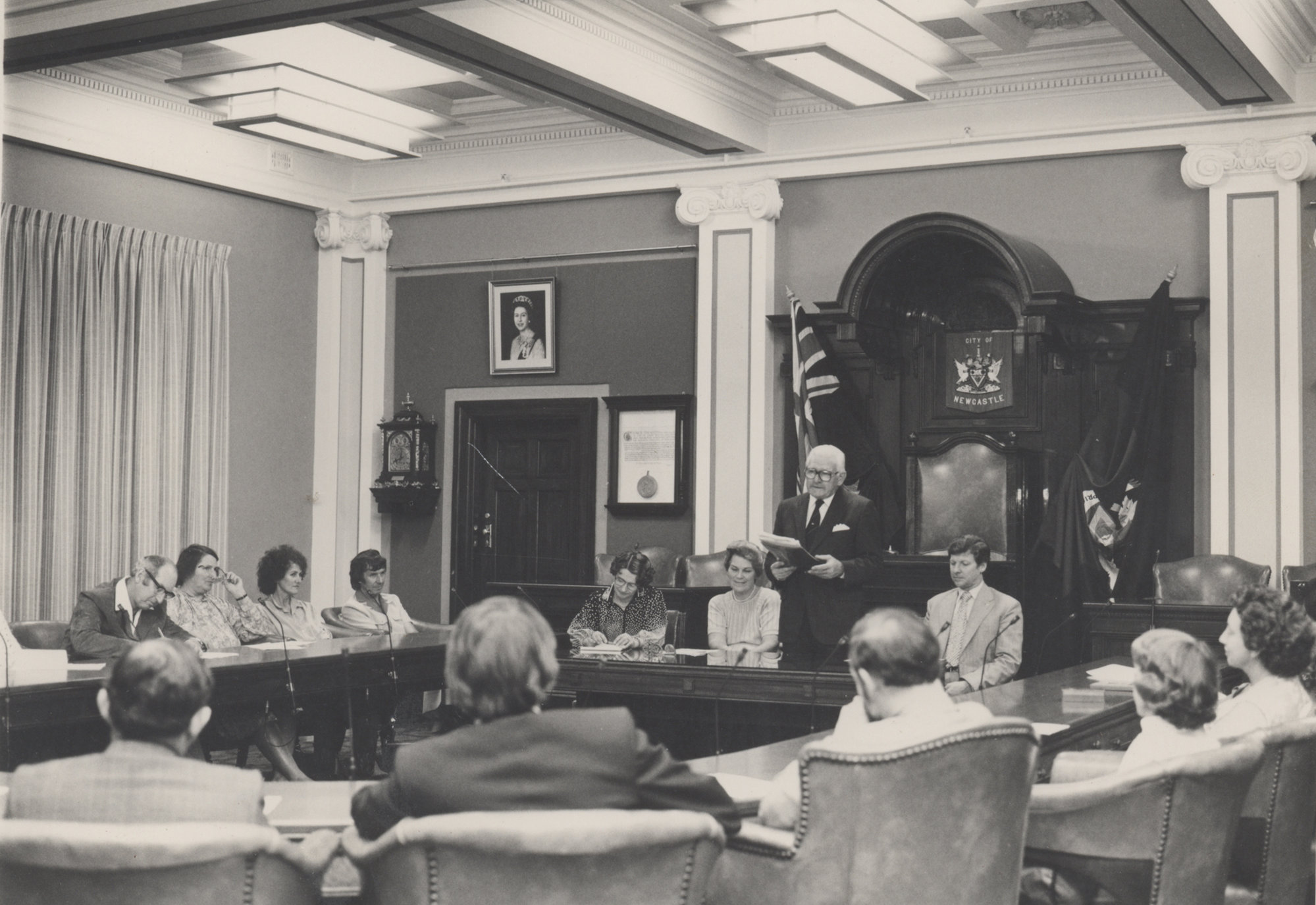 Bede Callaghan (Centre - standing) at Newcastle City Council Chambers with the Lord Mayor Joy Cummings, Newcastle, Australia, [P1771-33]. Living Histories, accessed 18/03/2026, https://livinghistories.newcastle.edu.au/nodes/view/45531