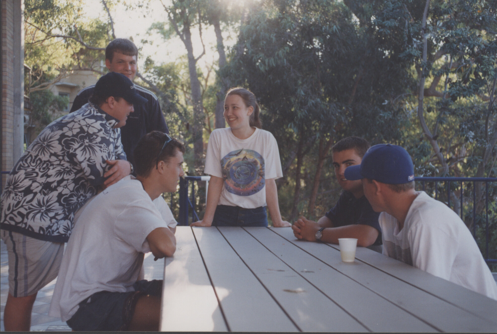 Students relaxing at Nelson Bay, Australia - 1990s ([1990s]), [P1702]. Living Histories, accessed 14/04/2026, https://livinghistories.newcastle.edu.au/nodes/view/45855
