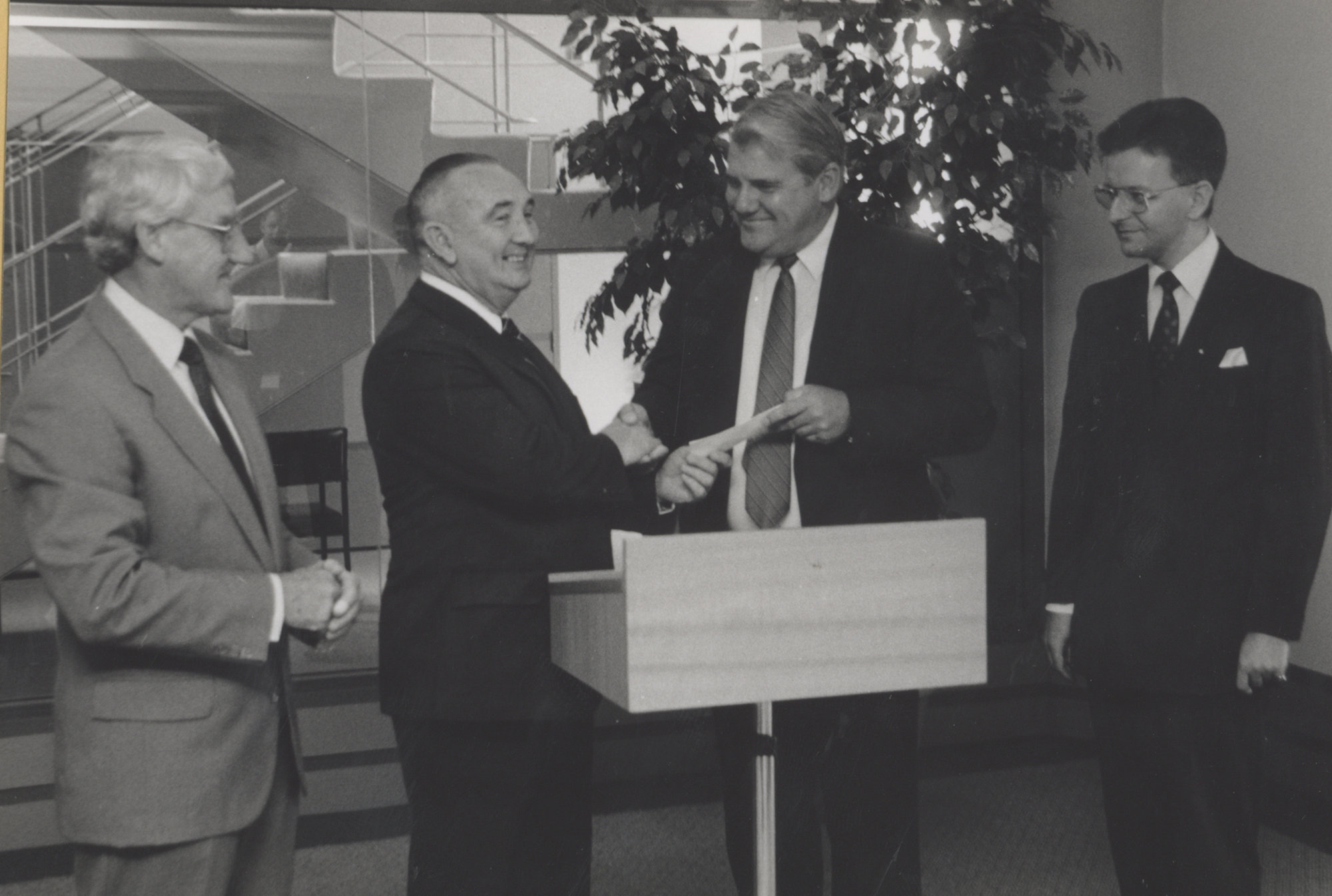 Masonic representatives, Mr Neil Richardson, Newcastle Conservatorium of Music, the University of Newcastle, Australia - 1990, [P1769-73]. Living Histories, accessed 16/04/2026, https://livinghistories.newcastle.edu.au/nodes/view/46165