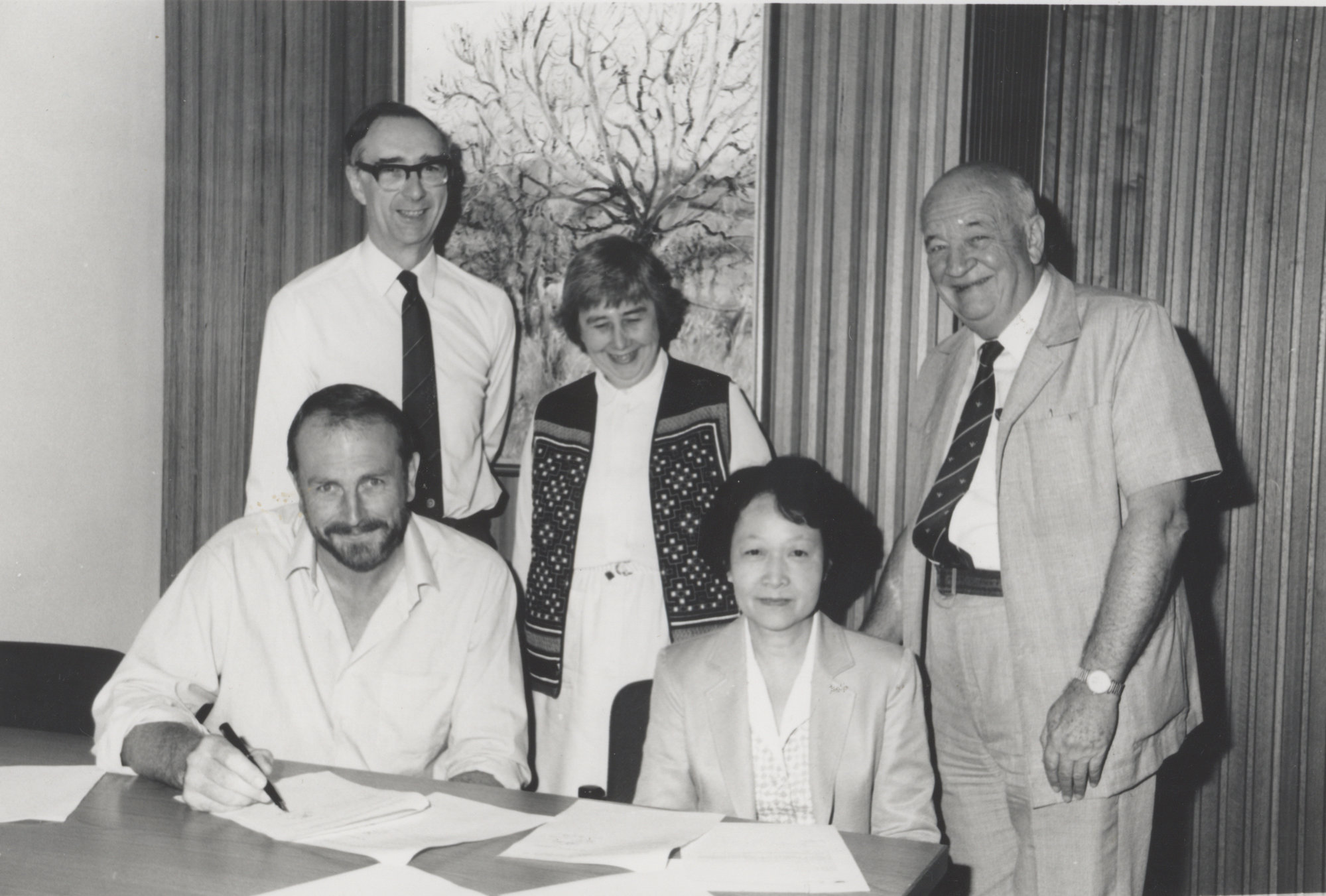 Academic Exchange Agreement signed - Professor Chancha Suvannathat, Professor Keith Morgan, Professor John Keats, Professor Daphne Keats, and Associate Professor David Finlay at the University of Newcastle, Australia - 1989 (1989), [P1768-08]. Living Histories, accessed 15/04/2026, https://livinghistories.newcastle.edu.au/nodes/view/46225
