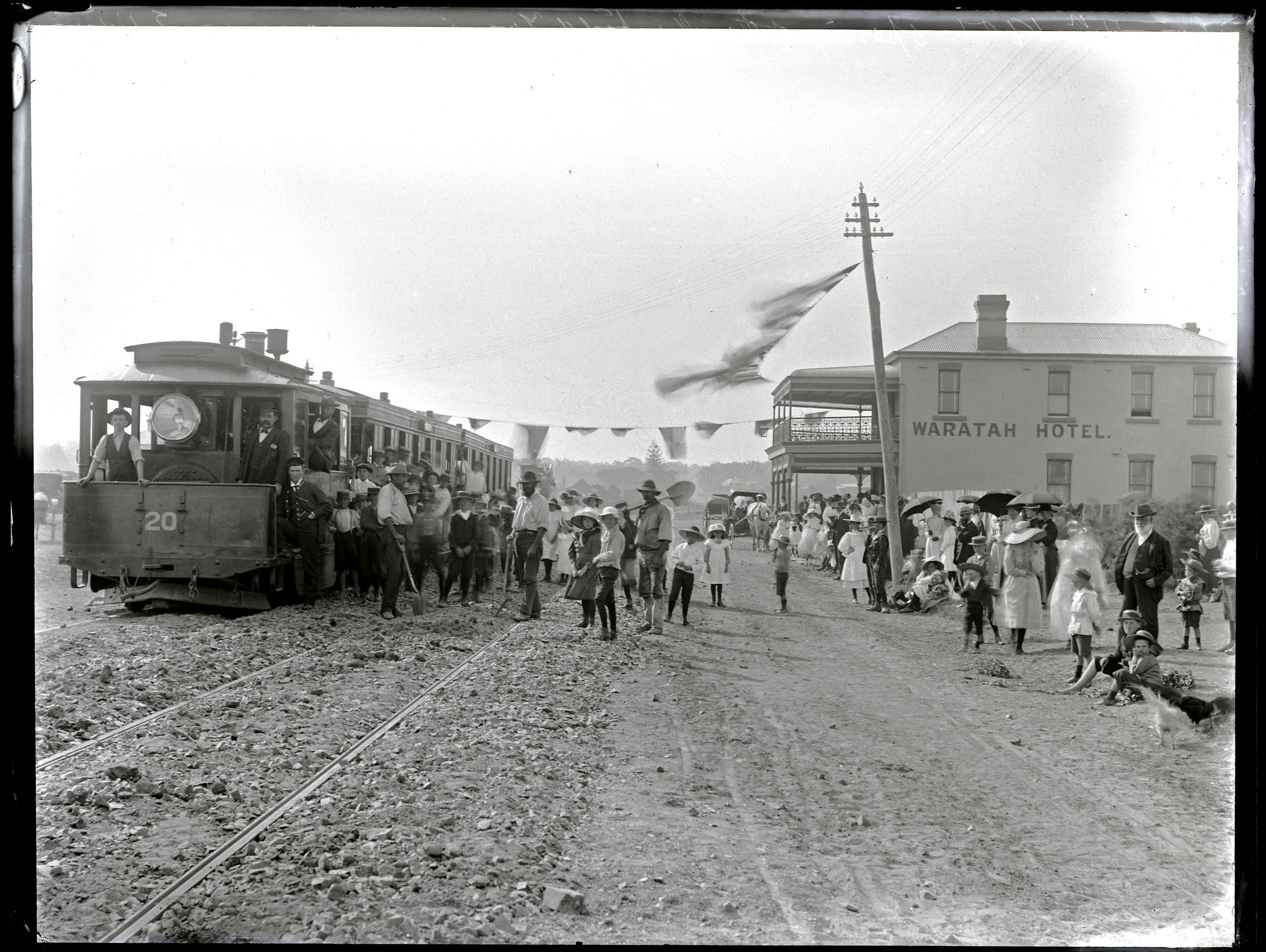 Ralph Snowball, Opening Mayfield steam tram, Mayfield, NSW, 11 January 1901 (11th January 1901), [ASGN0148-B6]. Living Histories, accessed 04/04/2026, https://livinghistories.newcastle.edu.au/nodes/view/46374