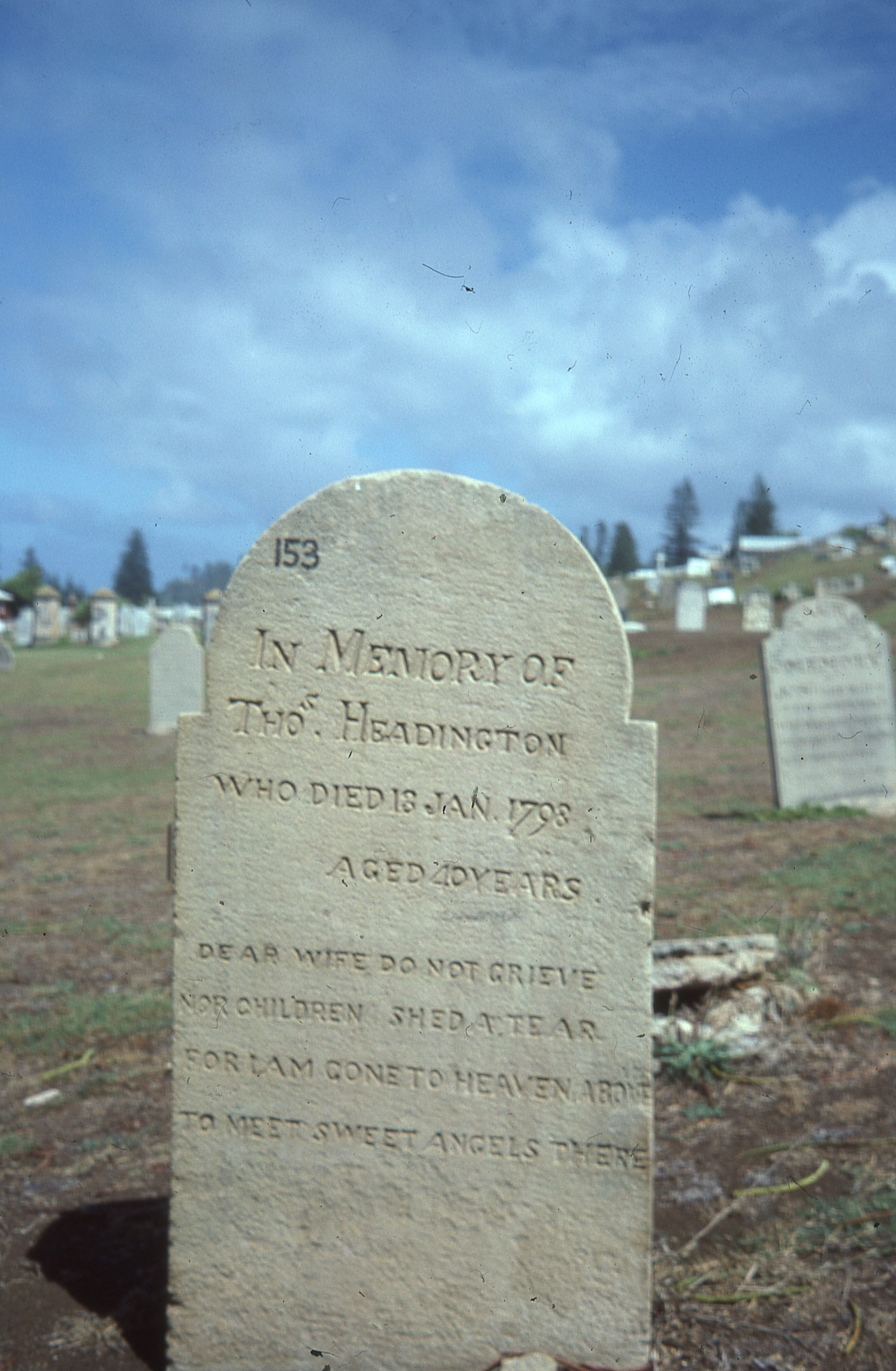 Grave of Thomas Headington, died 18th Jan. 1798, Norfolk Island, [1980s]