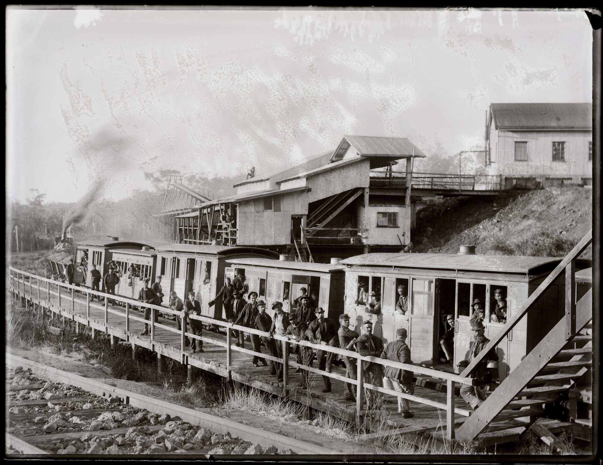 Ralph Snowball, Miners train at the Burwood Colliery Number Three Pit, NSW, 26 August 1898 (26th August 1898), [ASGN0170-B7]. Living Histories, accessed 14/04/2026, https://livinghistories.newcastle.edu.au/nodes/view/46403