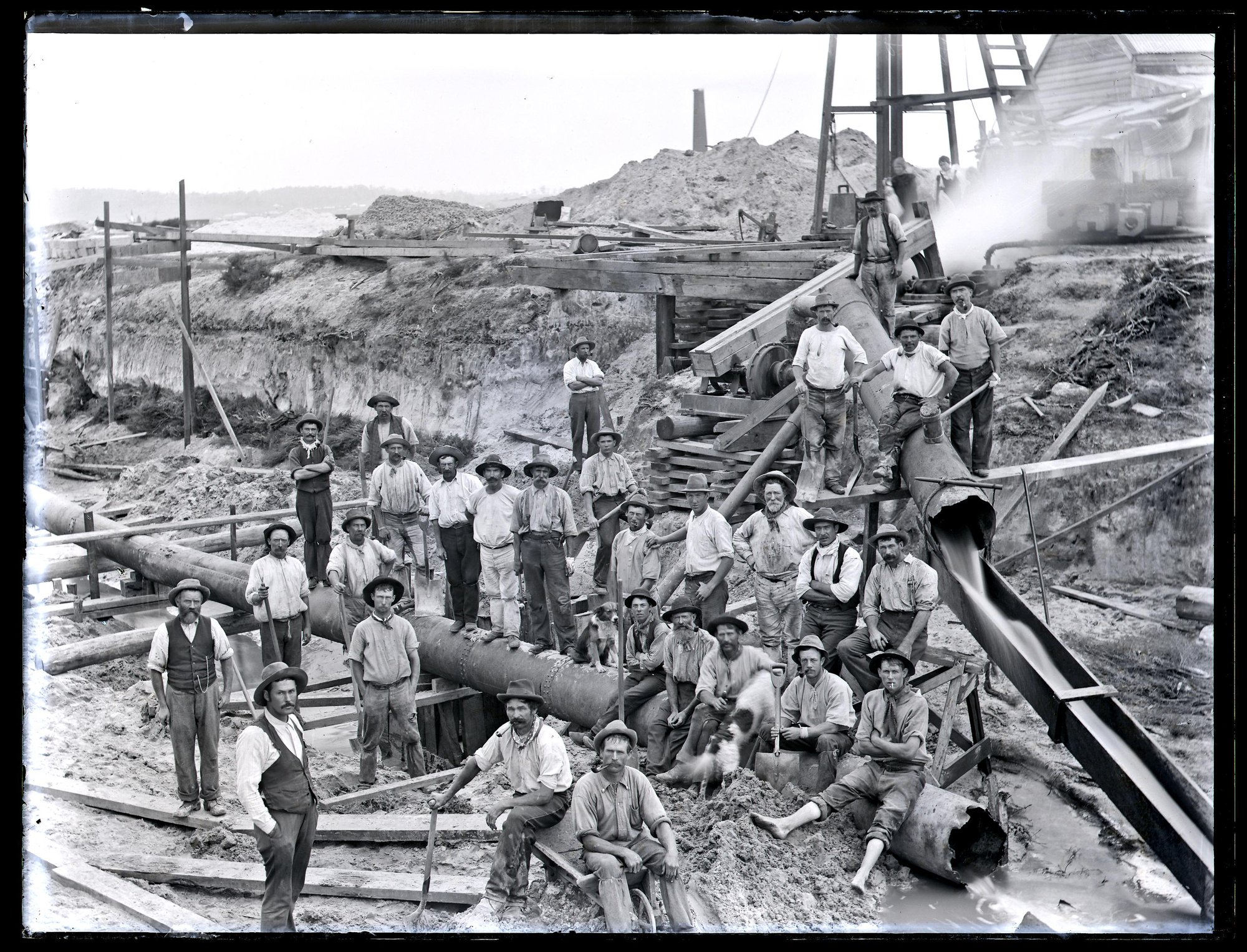 Drain construction workers at Broadmeadow, NSW, 6 April 1900
